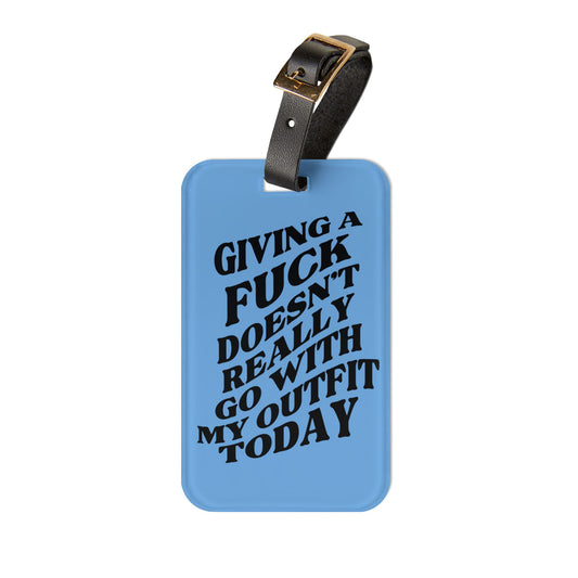 Doesn't Go with My Outfit Luggage Tag | Funny No Fs Given Baggage ID | Attitude Sayings Travel Accessory Sassy Quotes for Travelers Blue Tag