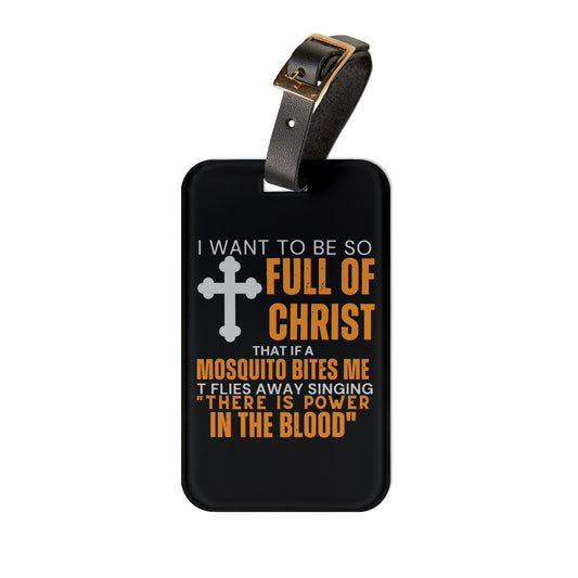 Full of Christ Luggage Tag | Funny Christian Travel Accessory | Jesus Humor Baggage ID Power in Jesus Blood Faith Based Jokes Christian GIft