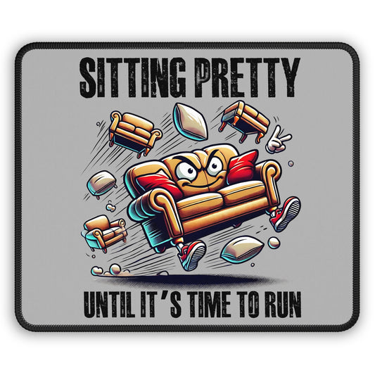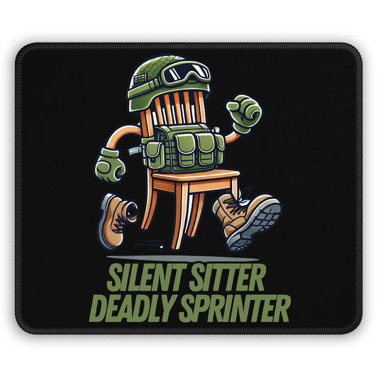 Silent Sitter Deadly Sprinter Non Slip Mouse Pad | Tactical Chair Cartoon Art | Funny Prop Hunt Design | Bold Military Chair Gamer Gift