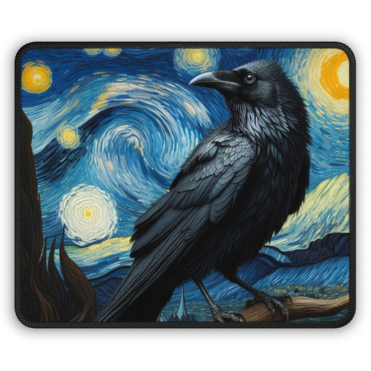 Black Raven Night Sky Non-Slip Mouse Pad | Starry Night-Inspired Art | Gothic Gift for Raven Lovers Office Decor Witchy Computer Mat