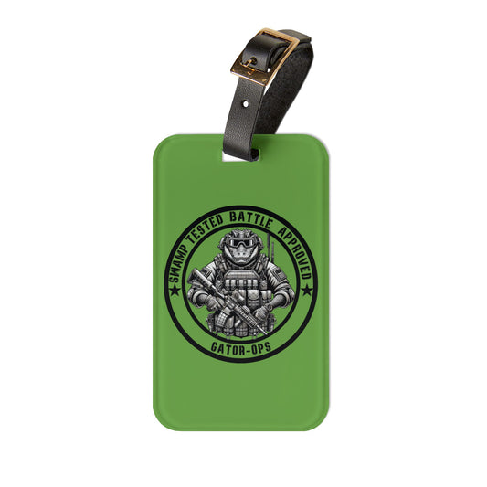 Swamp Tested Battle Approved Luggage Tag | Tactical Alligator Baggage ID | Gator Ops Military-Inspired Travel Accessory Reptile Strategy Fan