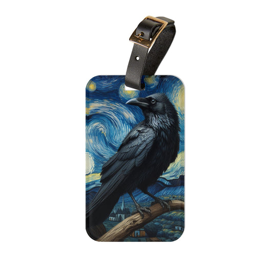 Black Raven Night Sky Luggage Tag | Starry Night-Inspired Gothic Travel Accessory | Raven Lovers Baggage ID | Witchy Gift