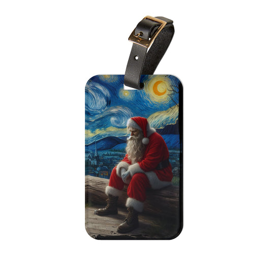 Santa Claus Night Sky Luggage Tag | Starry Night-Inspired Holiday Travel Accessory | Christmas Baggage ID for Santa Lovers | Festive Gift