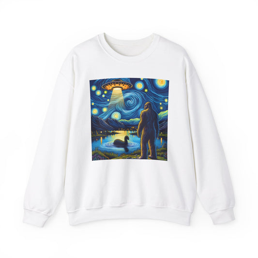 Bigfoot Alien Spaceship Crewneck Sweater | Sasquatch Meets Extraterrestrial Art | Fun UFO Humor Sweatshirt | Bigfoot Alien Lovers Gift