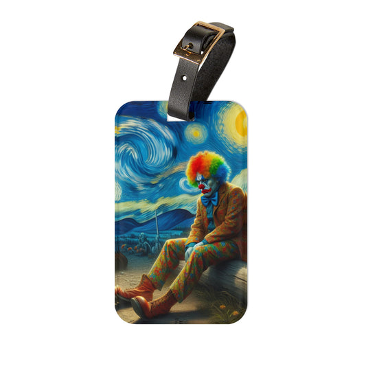 Sad Clown Night Sky Luggage Tag | Melancholic Art Travel Accessory | Unique Gift for Clown and Art Lovers | Baggage ID Circus Clown Gift