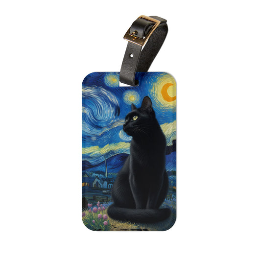Mystical Black Cat Under Starry Night Luggage Tag | Enchanting Travel Accessory | Perfect Gift for Cat Lovers | Witchcraft Baggage ID