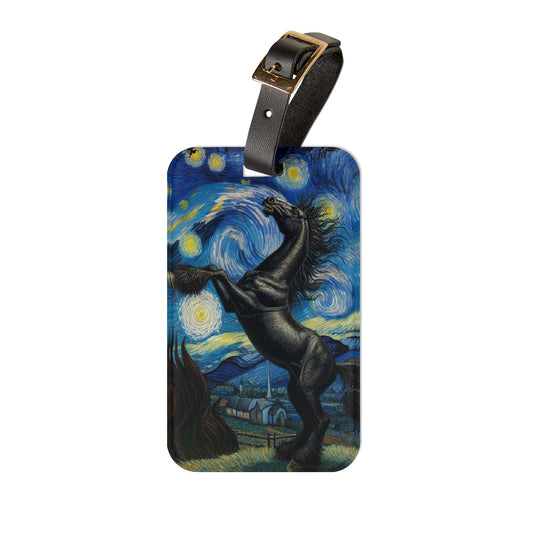 Majestic Black Horse Night Sky Luggage Tag | Starry Night-Inspired Travel Accessory | Elegant Gift for Equestrian Lovers | Baggage ID