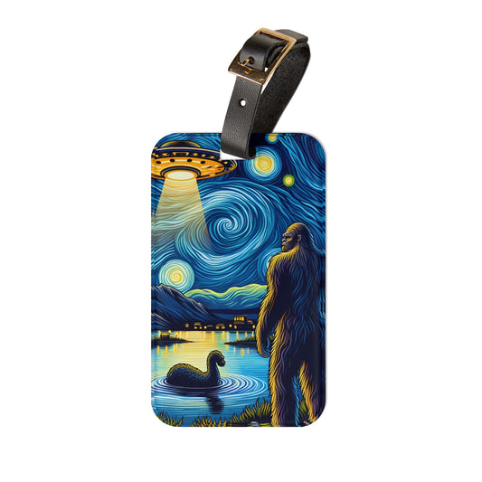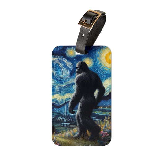 Bigfoot Night Sky Luggage Tag | Starry Night-Inspired Travel Accessory | Humorous Sasquatch Baggage ID for Quirky Bigfoot Lovers