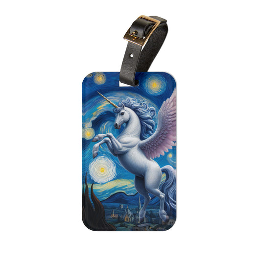Magical White Unicorn Night Sky Luggage Tag | Starry Night-Inspired Travel Accessory | Enchanting Unicorn Lover Baggage ID | Fantasy Gift