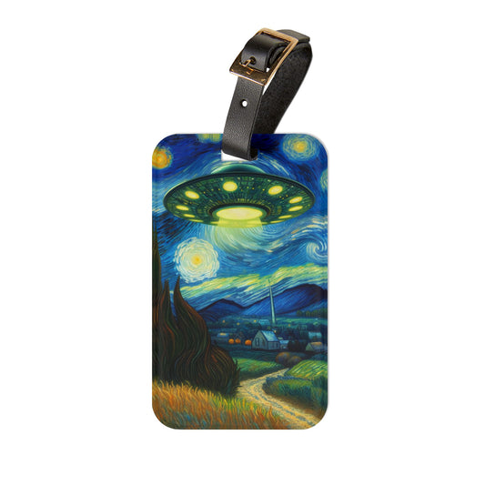 Alien UFO Night Sky Luggage Tag | Starry Night-Inspired Travel Accessory | Cosmic Sci-Fi Baggage ID for UFO Believers | Outer Space Gift