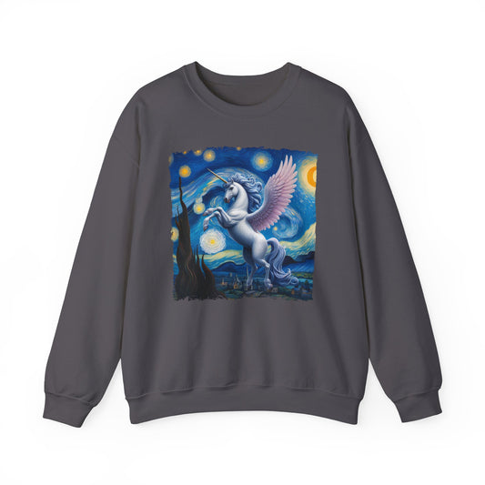 Magical White Unicorn Night Sky Crewneck Sweater Starry Night-Inspired Fantasy Art Pullover Sweatshirt Enchanted Unicorn Gift Fantasy Lovers