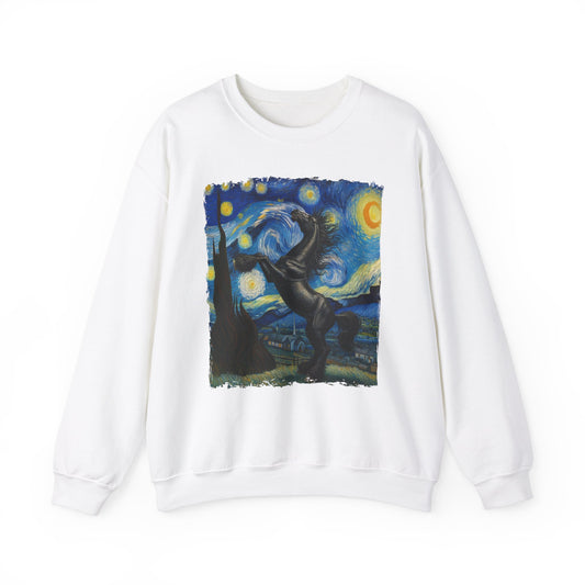 Majestic Black Horse Night Sky Crewneck Sweater | Starry Night-Inspired Equine Art | Perfect Gift Horse Lover Sweatshirt Horse Humor Apparel
