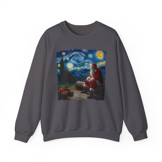 Santa Claus Night Sky Crewneck Sweater | Starry Night-Inspired Holiday Art Pullover Festive Santa Lover Magical Christmas Season Sweatshirt