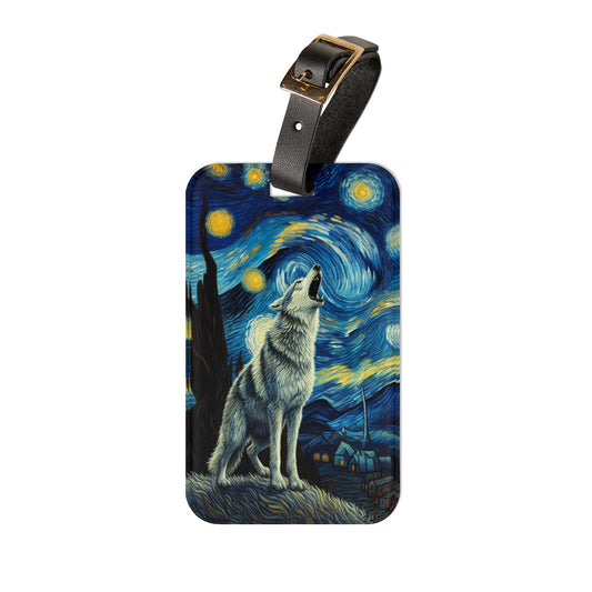 Lone Wolf Night Sky Luggage Tag | Starry Night-Inspired Travel Accessory | Mystical Wolf Baggage ID | Nature & Wilderness Lover Gift