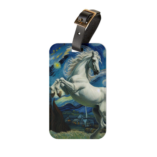 Majestic White Horse Night Sky Luggage Tag | Starry Night-Inspired Travel Accessory | Enchanting Horse Lover Baggage ID | Horse Gift