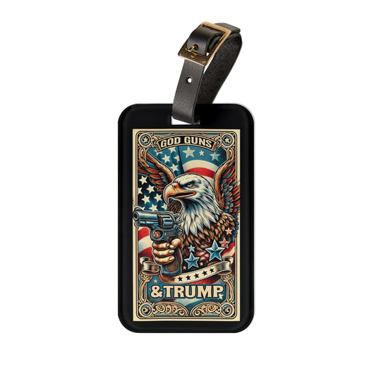 God Guns Trump Eagle American Flag Luggage Tag - Unique Travel Accessory for Proud Patriots - Perfect Baggage ID for Freedom Lovers