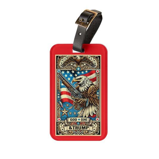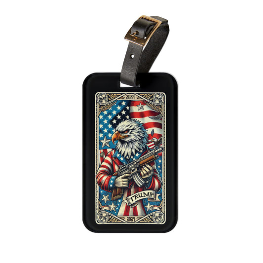Gods Guns Trump Eagle Flag Luggage Tag - Tarot Style Travel Accessory for Proud Patriots - Perfect Baggage ID for Freedom Seekers