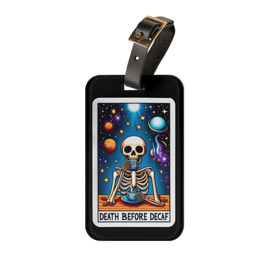 Death Before Decaf Luggage Tag - Unique Travel Accessory for Coffee Lovers - Perfect Baggage ID for Caffeine Addicts & Espresso Enthusiast