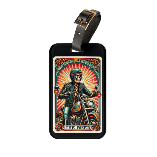 Biker Tarot Card Luggage Tag - Unique Travel Accessory for Motorcycle Riders - Perfect Baggage ID for Bikers & Open Road Adventurers