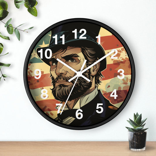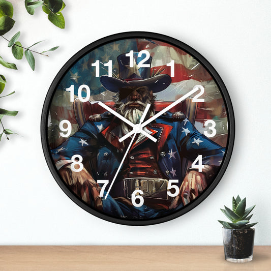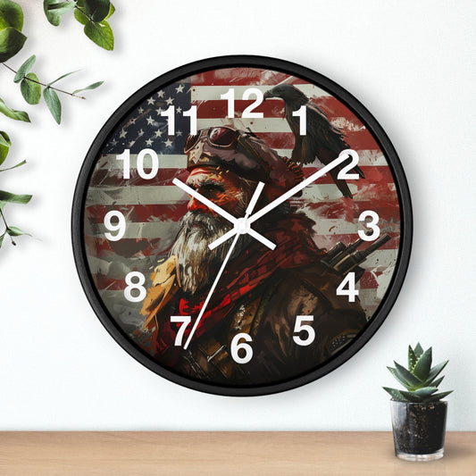 Bearded Patriot Wall Clock with Crow | Grunge USA Rebel Art | Battery Operated | Founding Fathers Inspired Decor | Unique Patriotic Gift