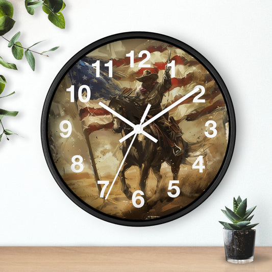 Rebel Cowboy on Horse Wall Clock | Vintage Western Patriot Art | Battery Operated | Rustic Americana Decor | Perfect Gift True Western Fans