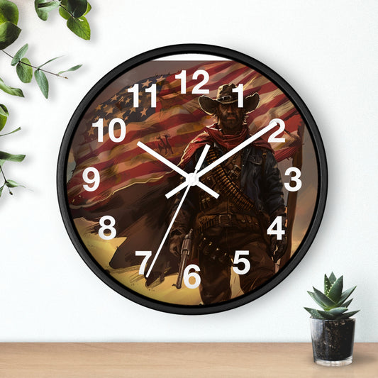 American Cowboy Outlaw Wall Clock | Vintage Western Rebel Art | Battery Operated | Rustic USA Decor | Perfect Gift Patriotic Western Lovers