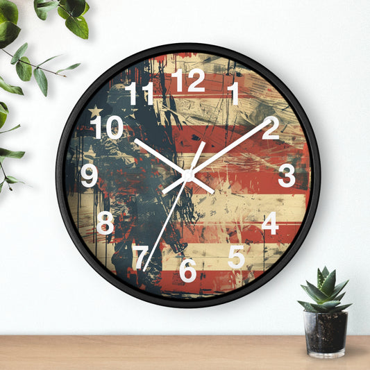Grunge Patriot Style Wall Clock | USA Rebellion Art | Battery Operated | Patriotic Pride Decor Founding Fathers | Perfect Gift History Buffs
