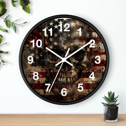 Skull with American Flag Wall Clock | Grunge Patriotic Art | Battery Operated | Bold USA Decor | Perfect Gift for Rebel Patriots