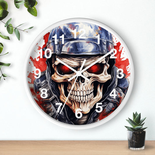 Red Eye Skull Motorcycle Rider Wall Clock | Splash Watercolor Biker Art | Battery Operated Unique Gift for Motorcycle Enthusiasts Biker Gift