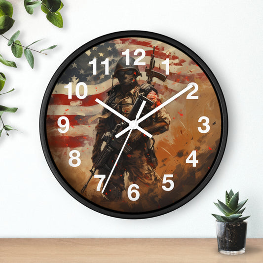War-Ready Tactical Soldier Wall Clock | Rugged Military Tribute Art | Battery Operated | Bold USA Decor | Perfect Gift Warriors and Patriots