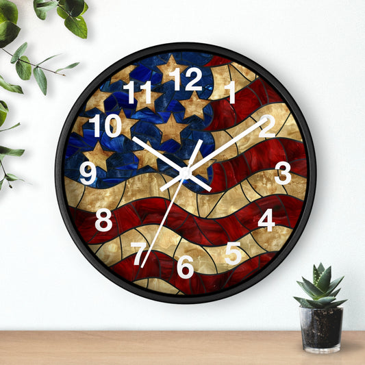 American Flag Stained Glass Wall Clock | Patriotic USA Decor | Battery Operated | Unique Home Accent | Perfect Gift for Proud Patriots