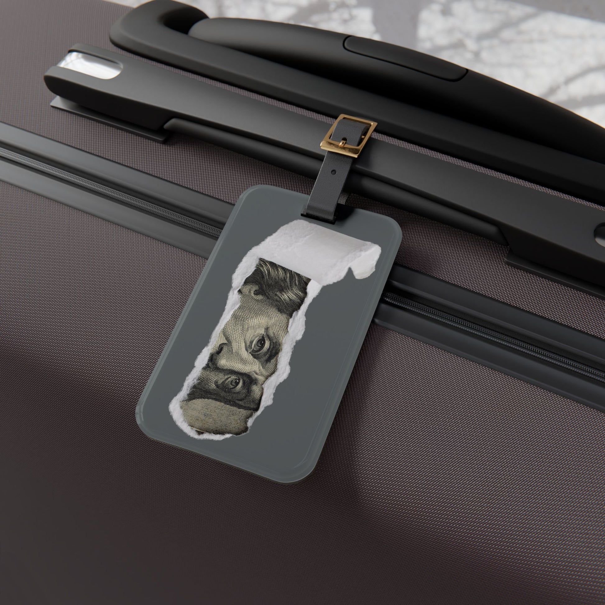 100 Dollar Bill Torn Away Luggage Tag | Benjamin Franklin Money Eyes Baggage ID | Streetwear Hustler Travel Accessory Founding Father Fans