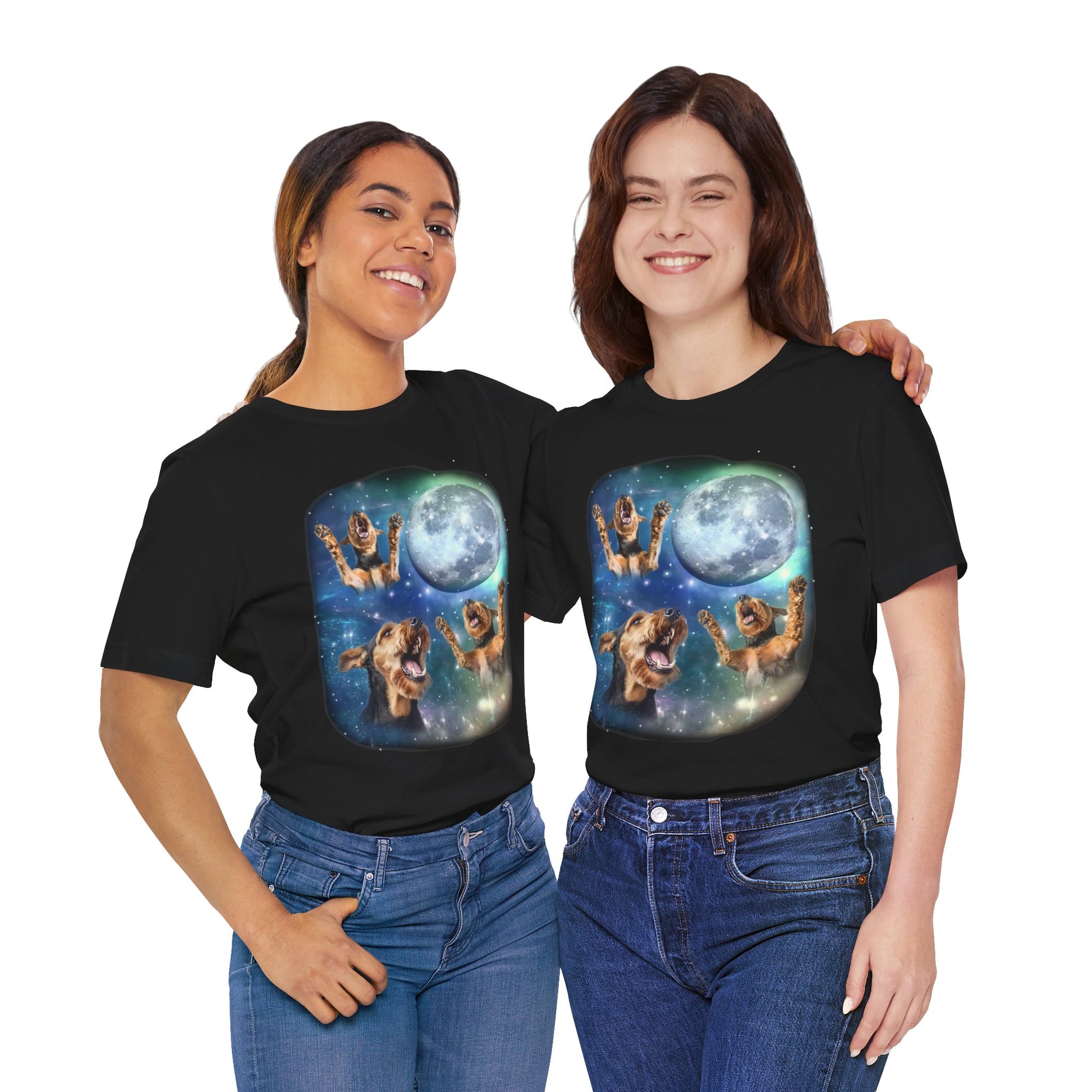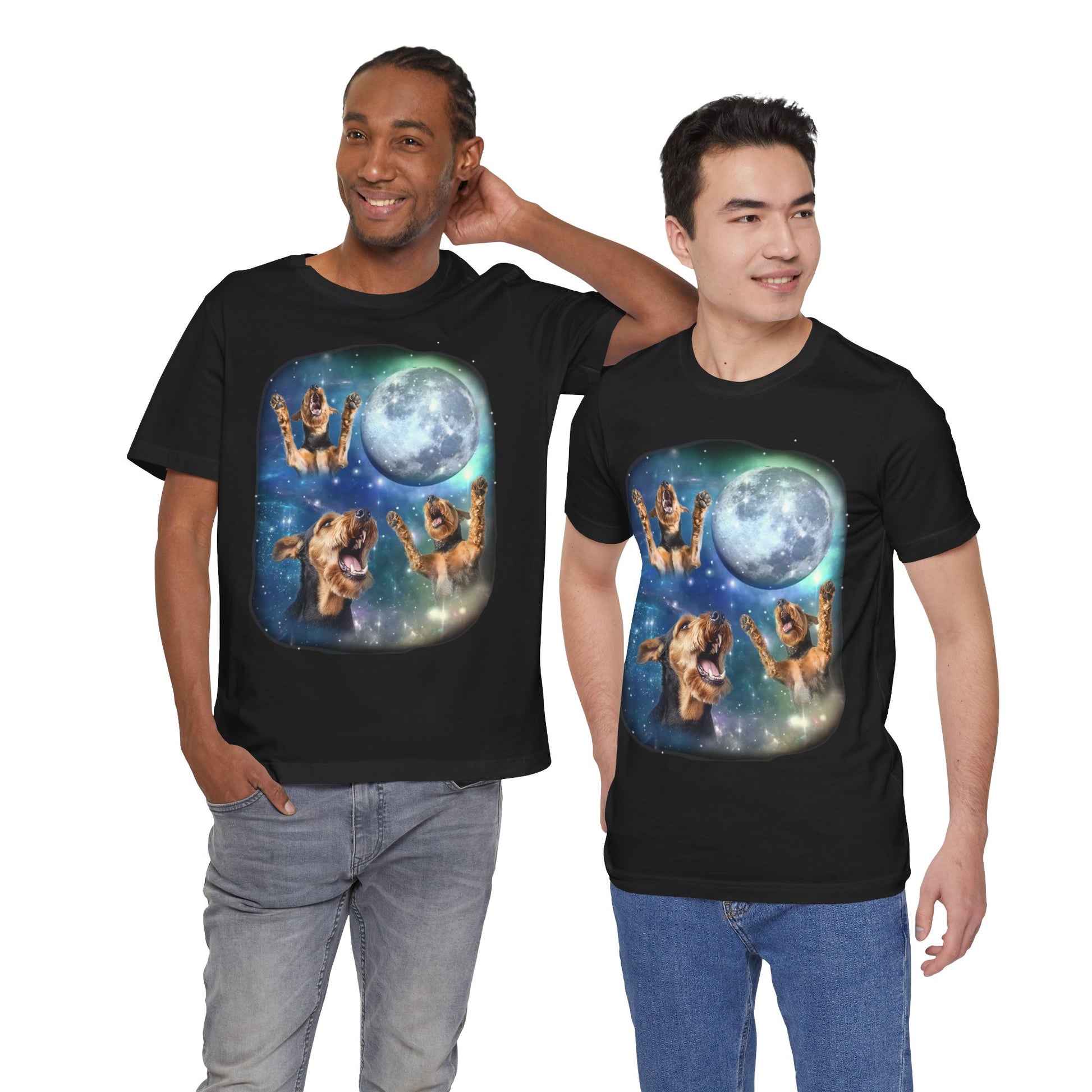 Airedale Terrier Howling at Moon Shirt Vintage 90s Inspired Dog Lover Tee Funny Dog Shirt Unique Airedale Gift Retro Animal Lover Apparel