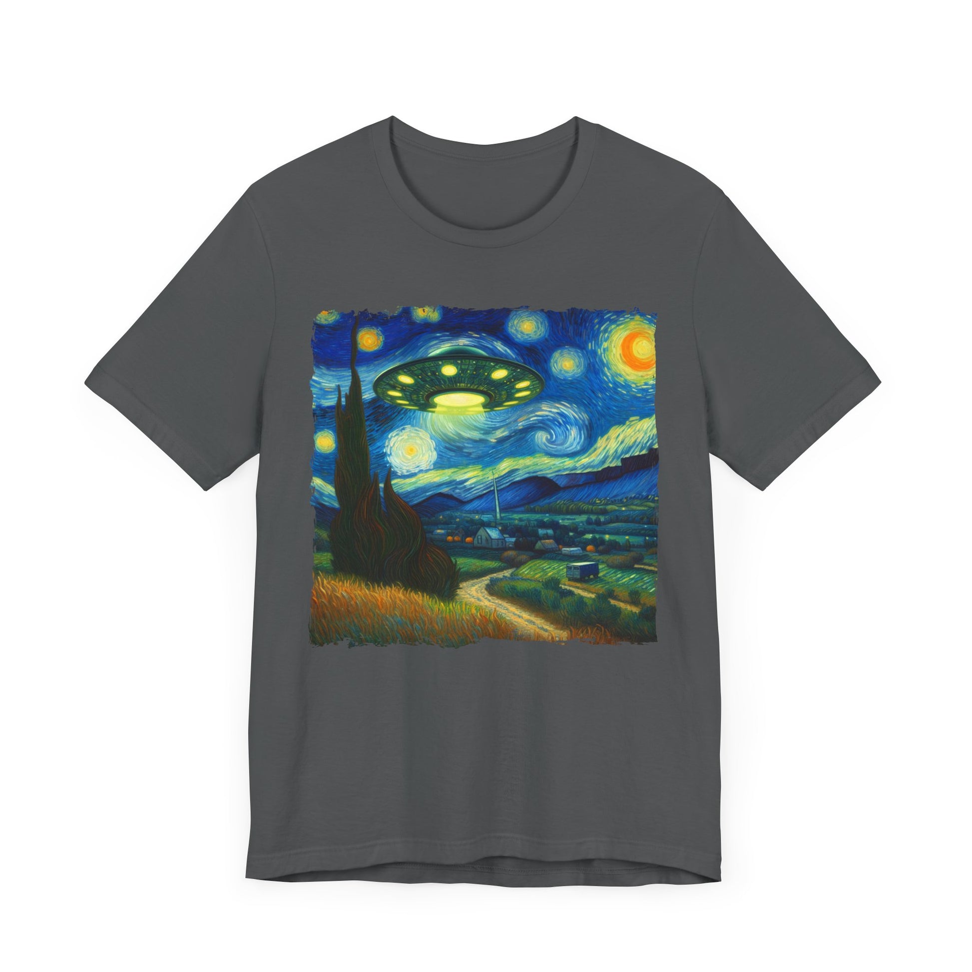 Alien UFO Night Sky Shirt | Starry Night-Inspired Outer Space Art | Cosmic Sci-Fi Tee for Alien Enthusiasts UFO Believers Funny Alien Gift