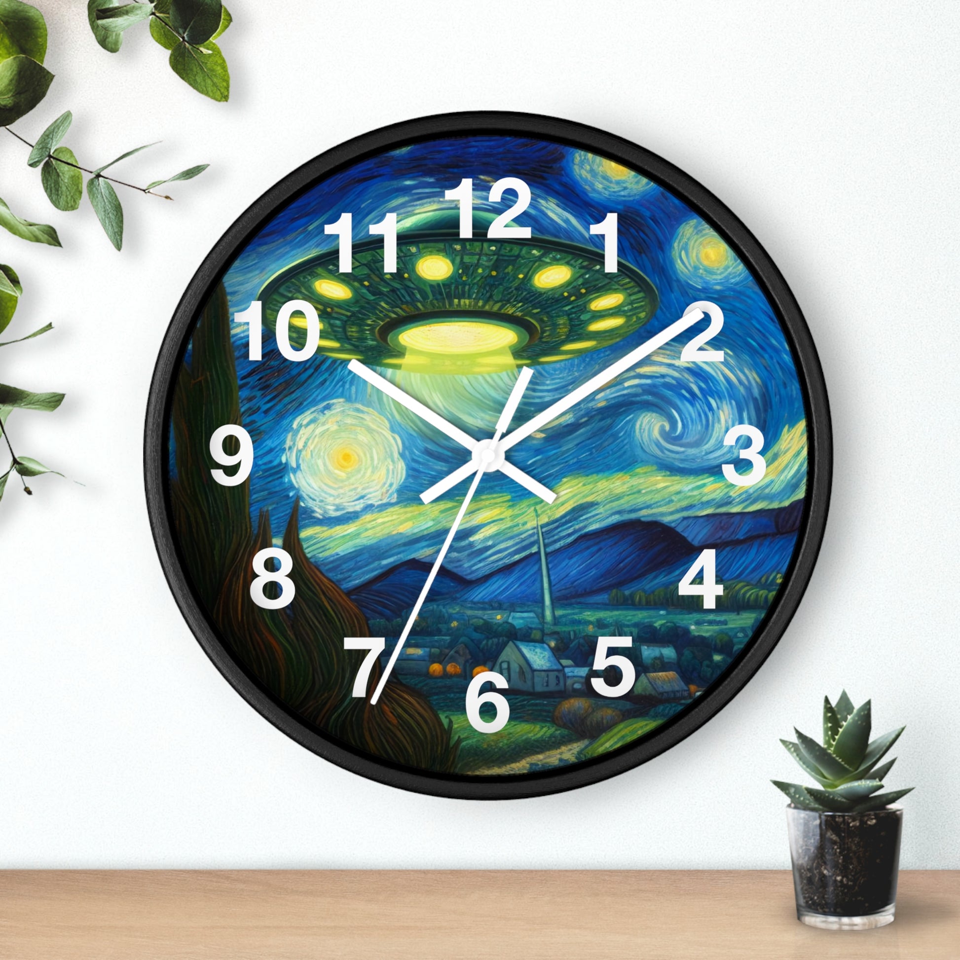 Alien UFO Night Wall Clock | Battery Operated | Starry Night-Inspired Outer Space Art | Perfect Gift for UFO Believers | Cosmic Wall Decor