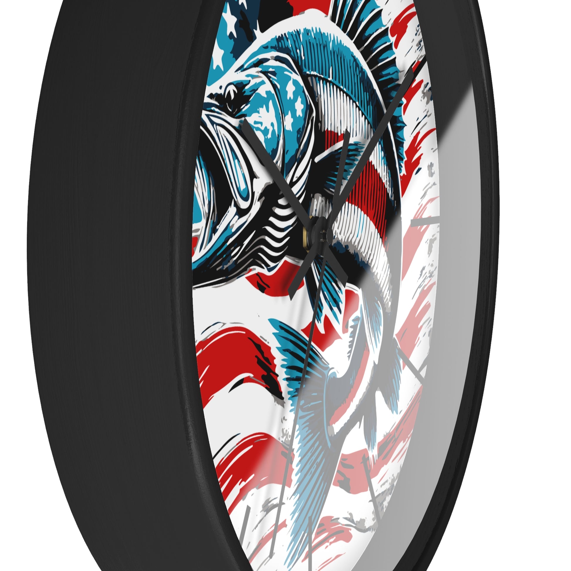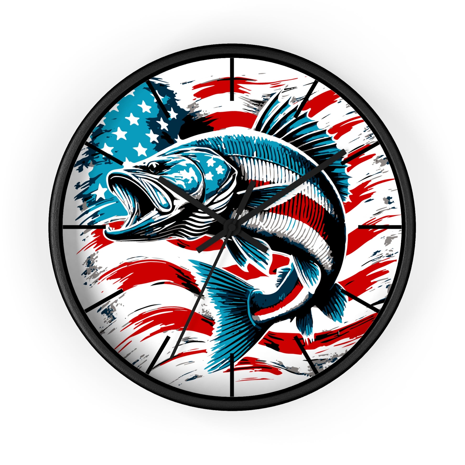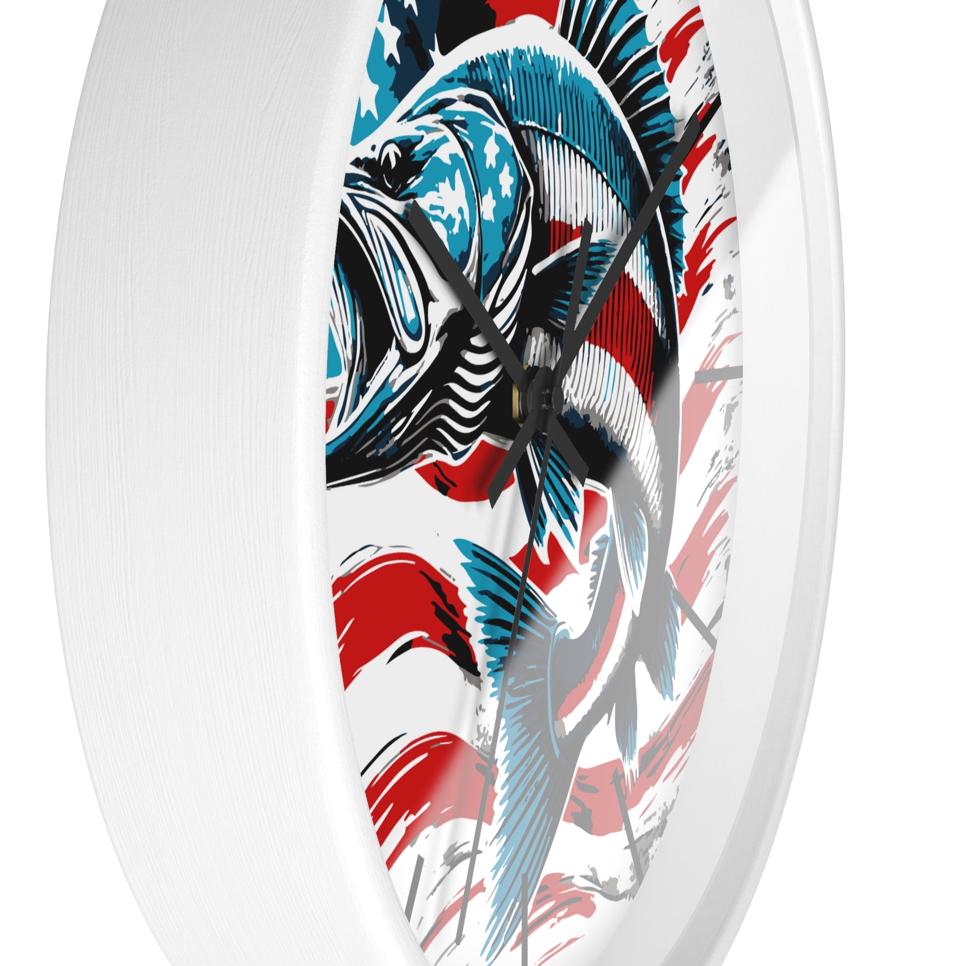 American Flag Fish Wall Clock | Patriotic Fisherman Decor | Battery Operated | Perfect for Man Cave | Unique Gift for Fishing Enthusiasts