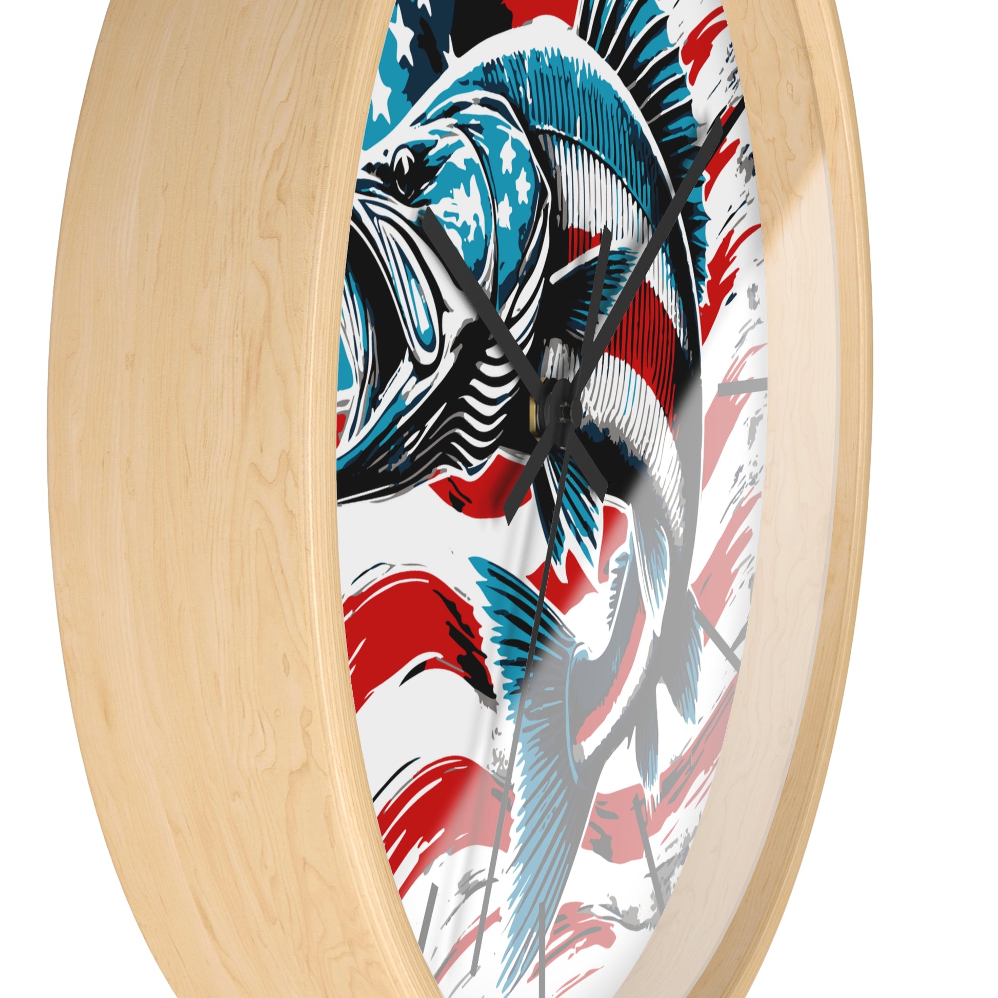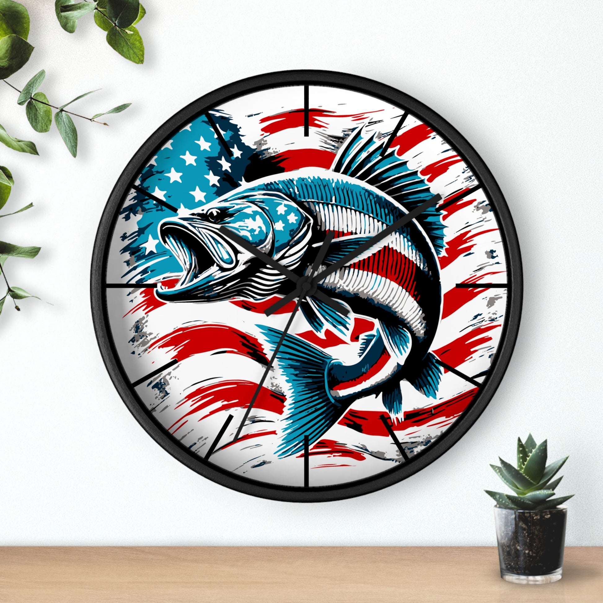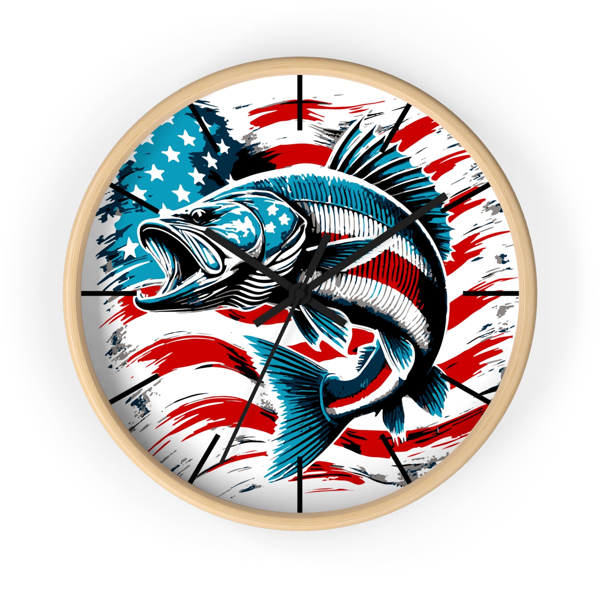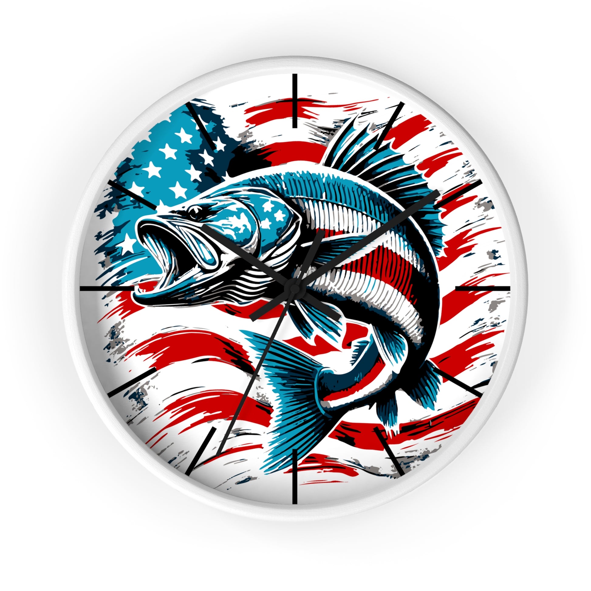 American Flag Fish Wall Clock | Patriotic Fisherman Decor | Battery Operated | Perfect for Man Cave | Unique Gift for Fishing Enthusiasts