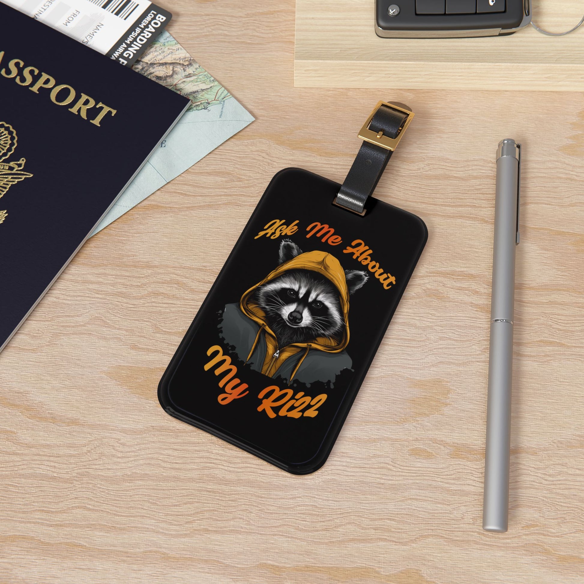 Ask Me About My Rizz Luggage Tag | Funny Raccoon Baggage ID | Gen Z Quotes Rizz Humor | Hilarious Sayings Gift Racoon Lovers GIft Travel