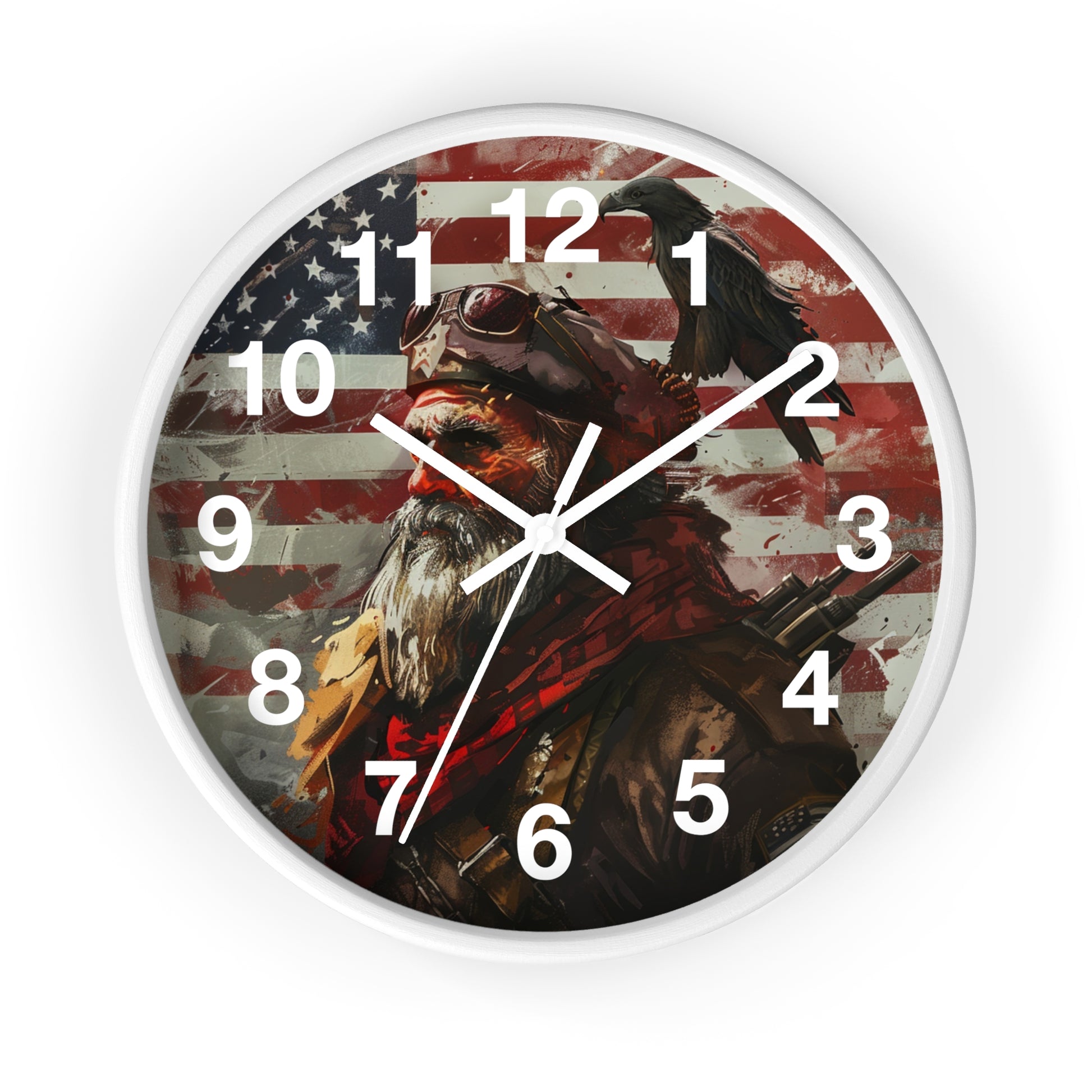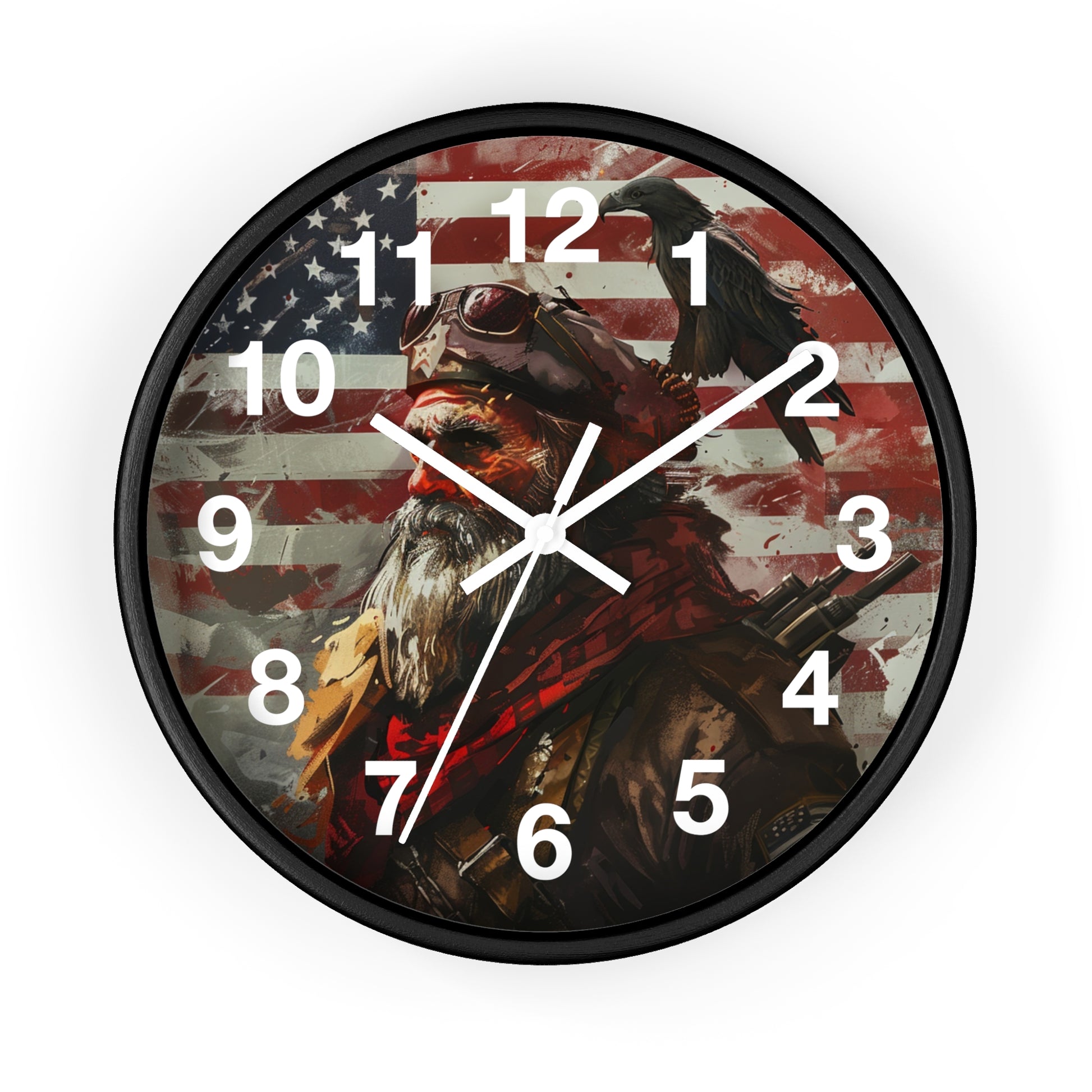 Bearded Patriot Wall Clock with Crow | Grunge USA Rebel Art | Battery Operated | Founding Fathers Inspired Decor | Unique Patriotic Gift