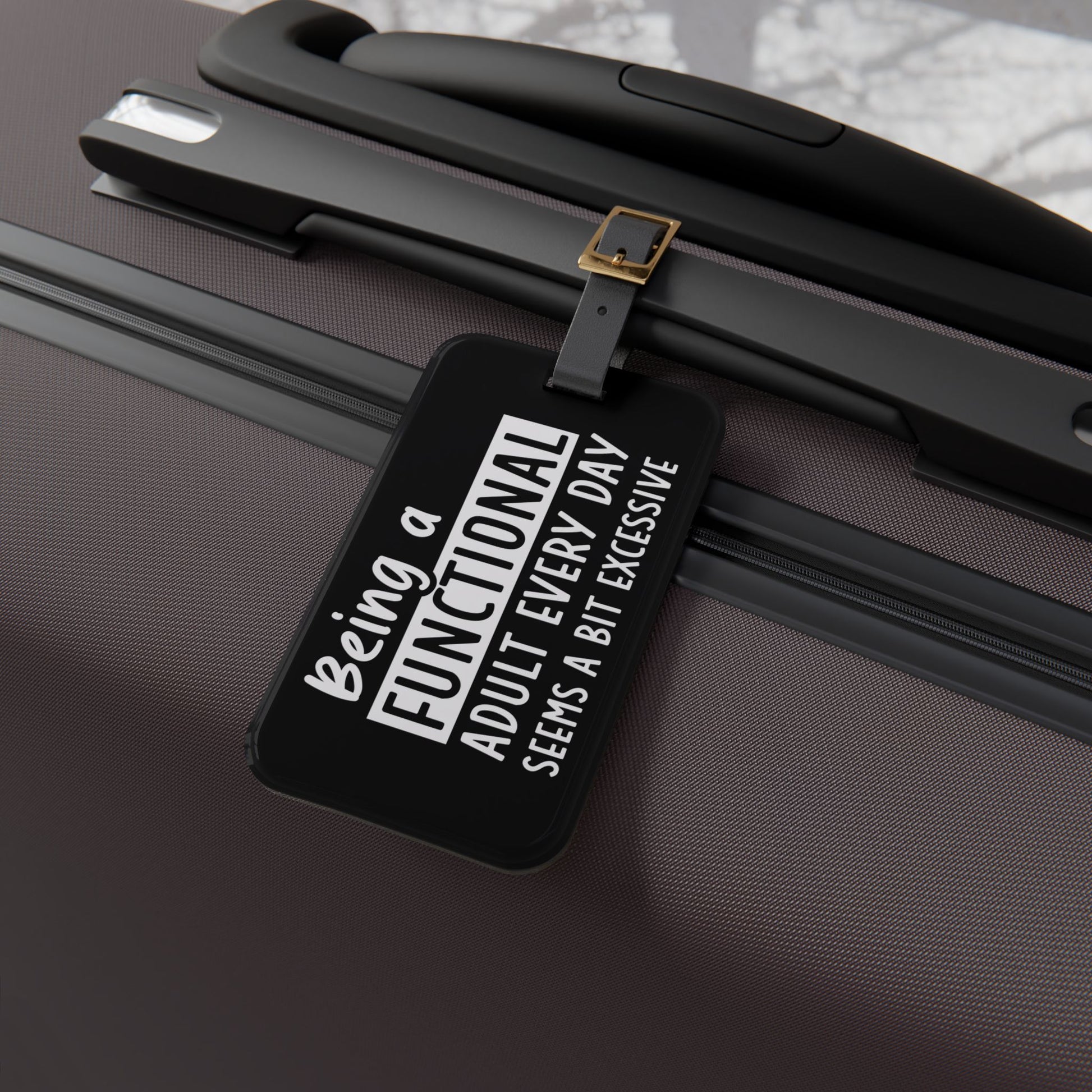 Being a Functional Adult Is Excessive Luggage Tag | Funny Adulting Quotes Baggage ID Sarcastic Humor Travel Accessory Hilarious Gift Adults