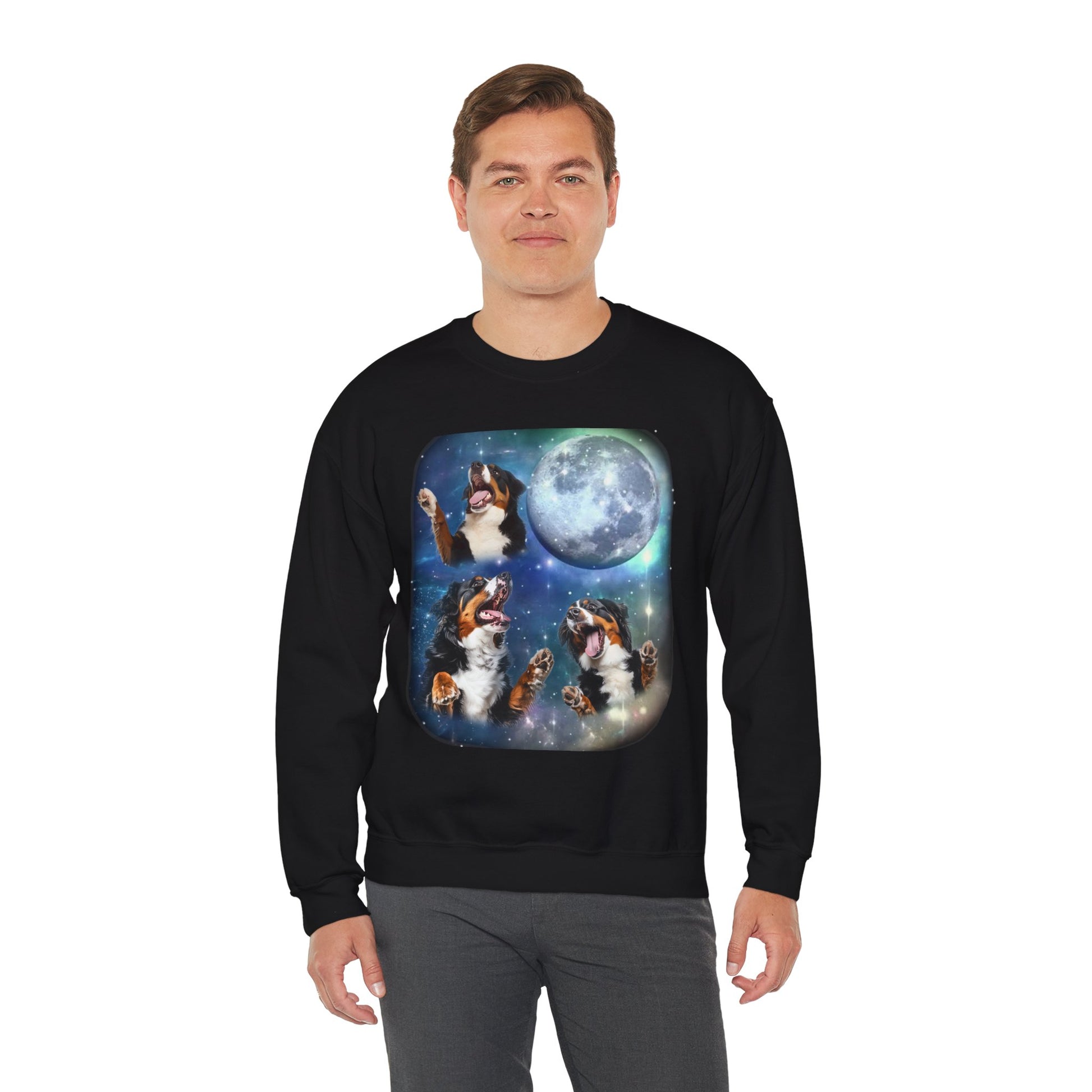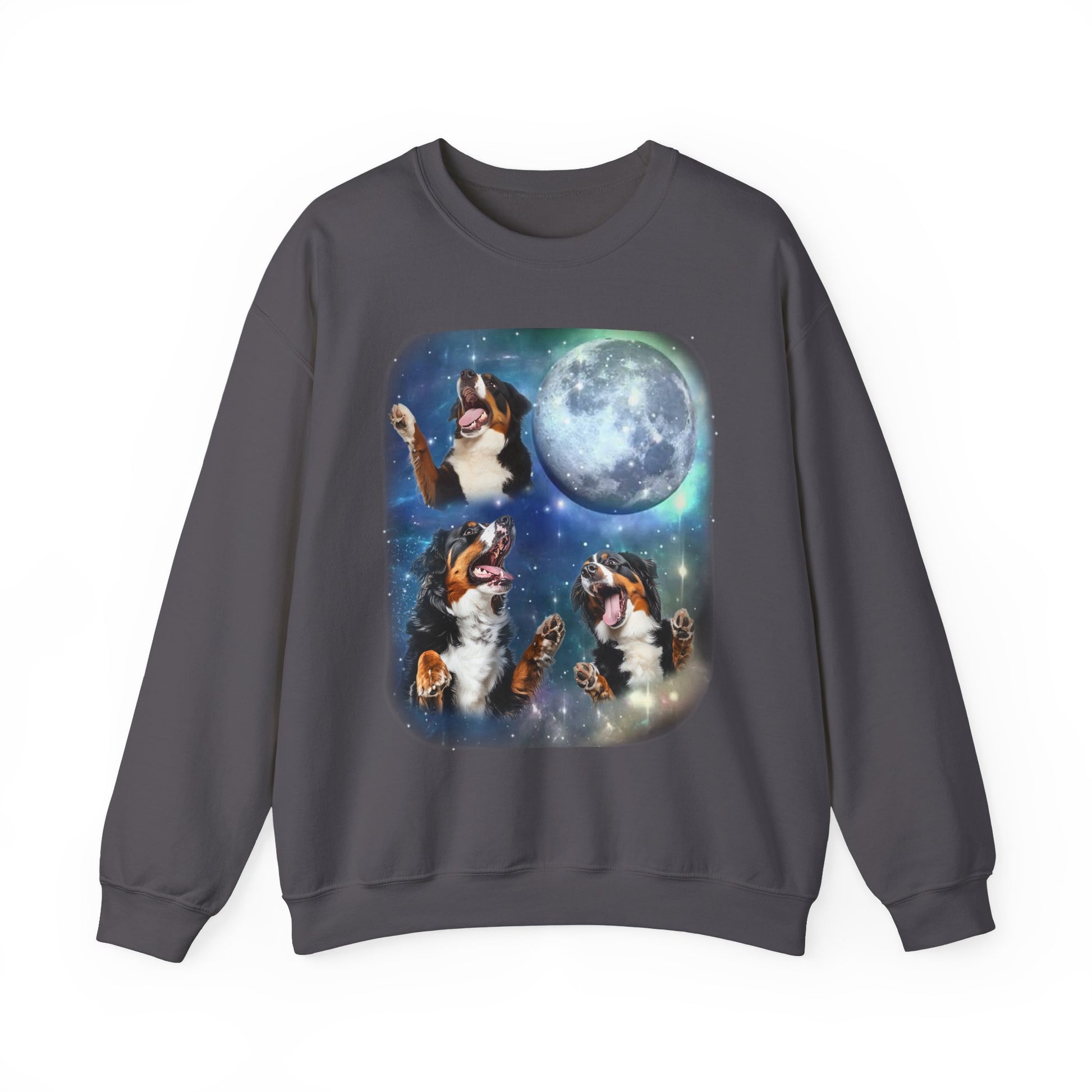 Bernese Mountain Dog Howling at Moon Sweatshirt | Vintage Dog Lover Pullover Sweater | Funny Bernese Apparel Gift for Dog Lovers Cute Dog