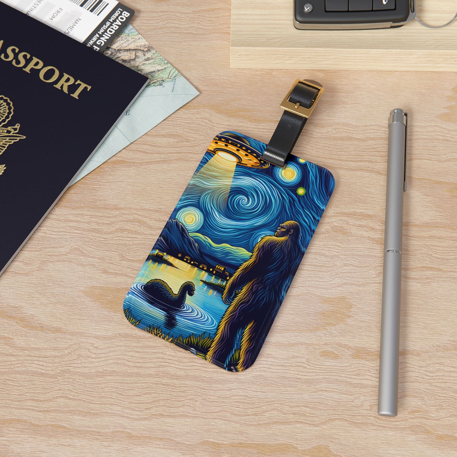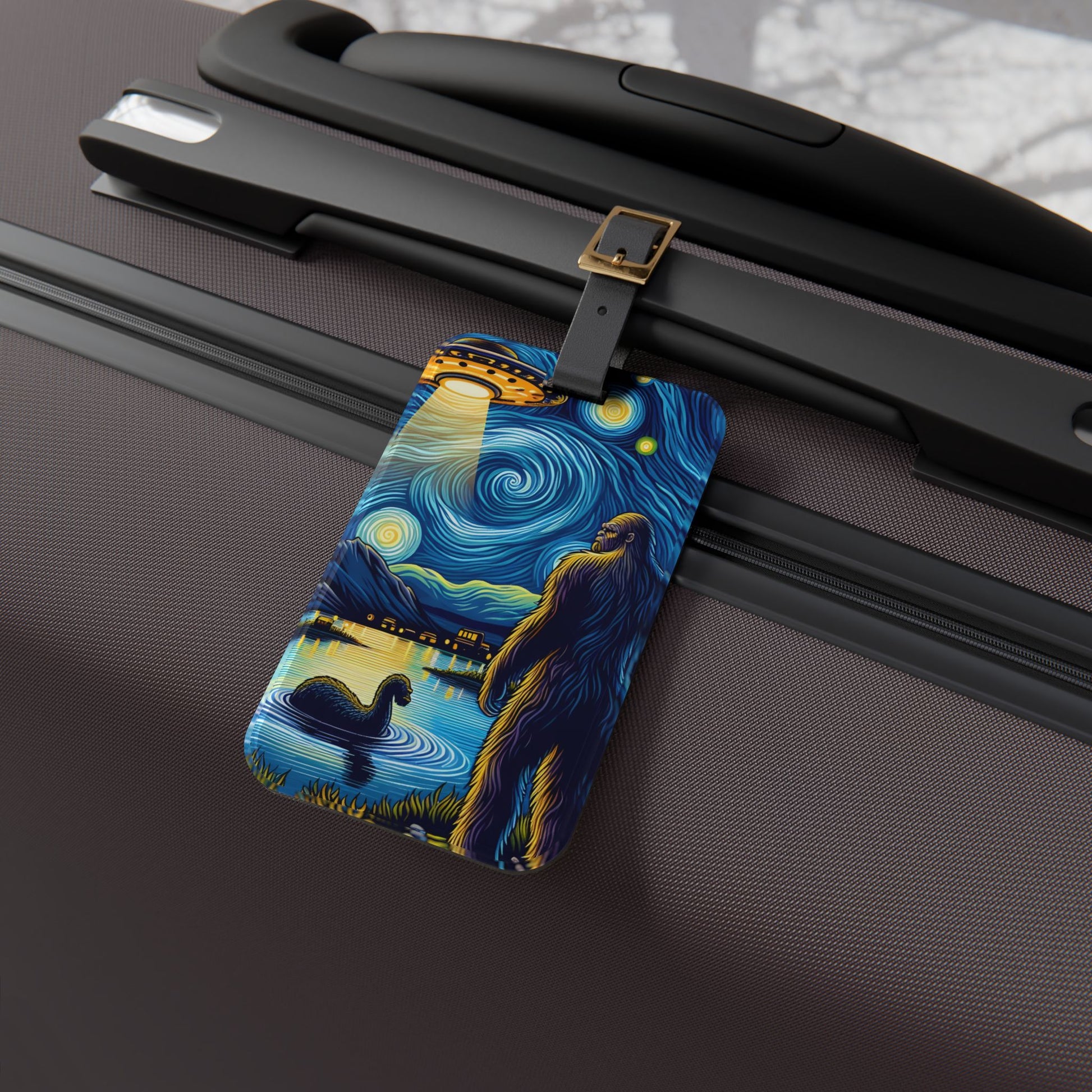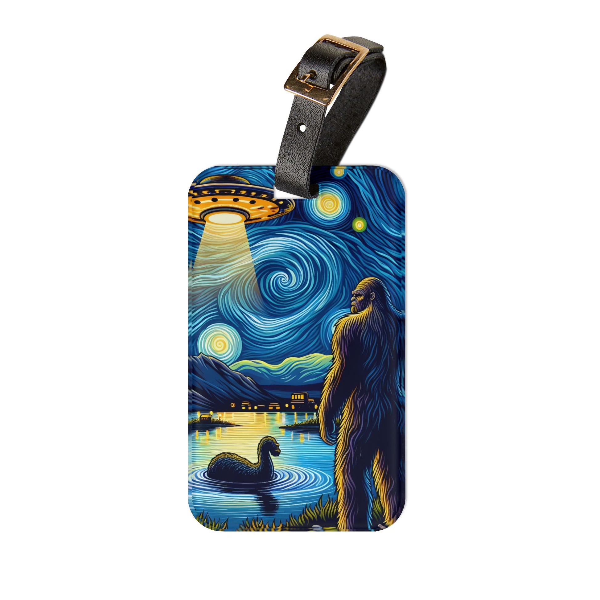 Bigfoot Alien Spaceship Night Sky Luggage Tag | Sasquatch Meets Extraterrestrial Travel Accessory | Fun UFO Humor Baggage ID Bigfoot Fans