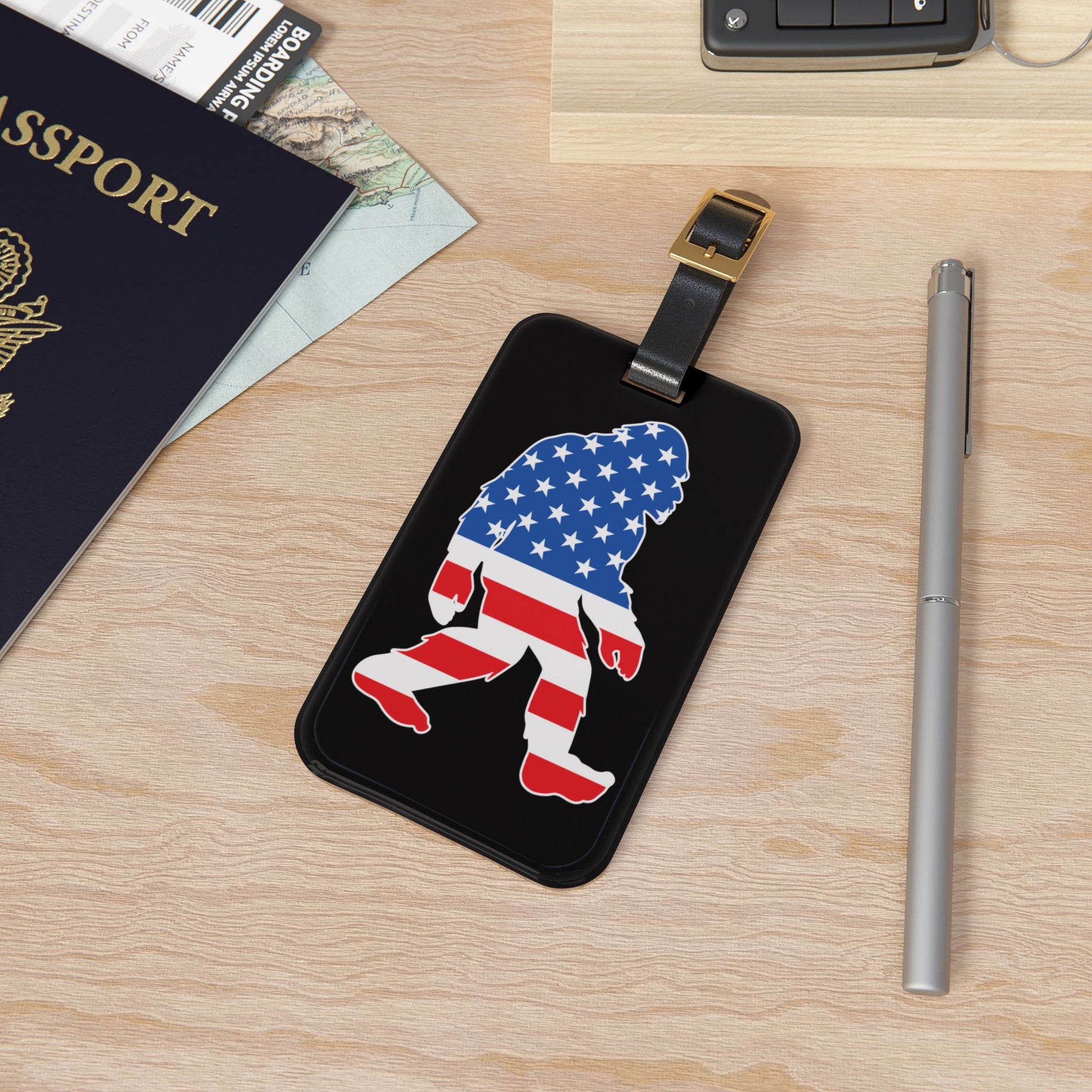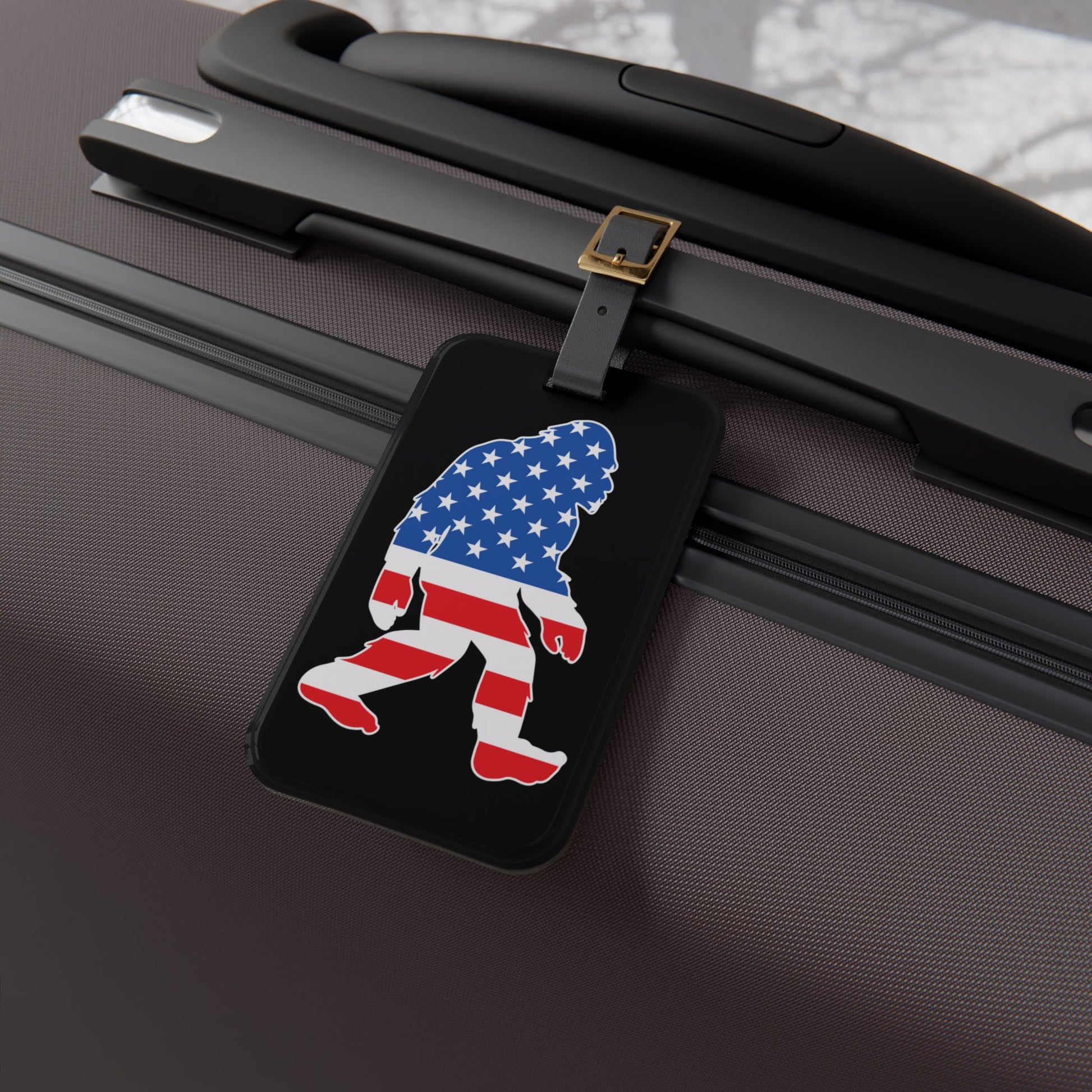 Bigfoot American Flag Luggage Tag | Patriotic Sasquatch Baggage ID | USA Freedom Travel Accessory | Proud USA Patriot Gift for Bigfoot Fans