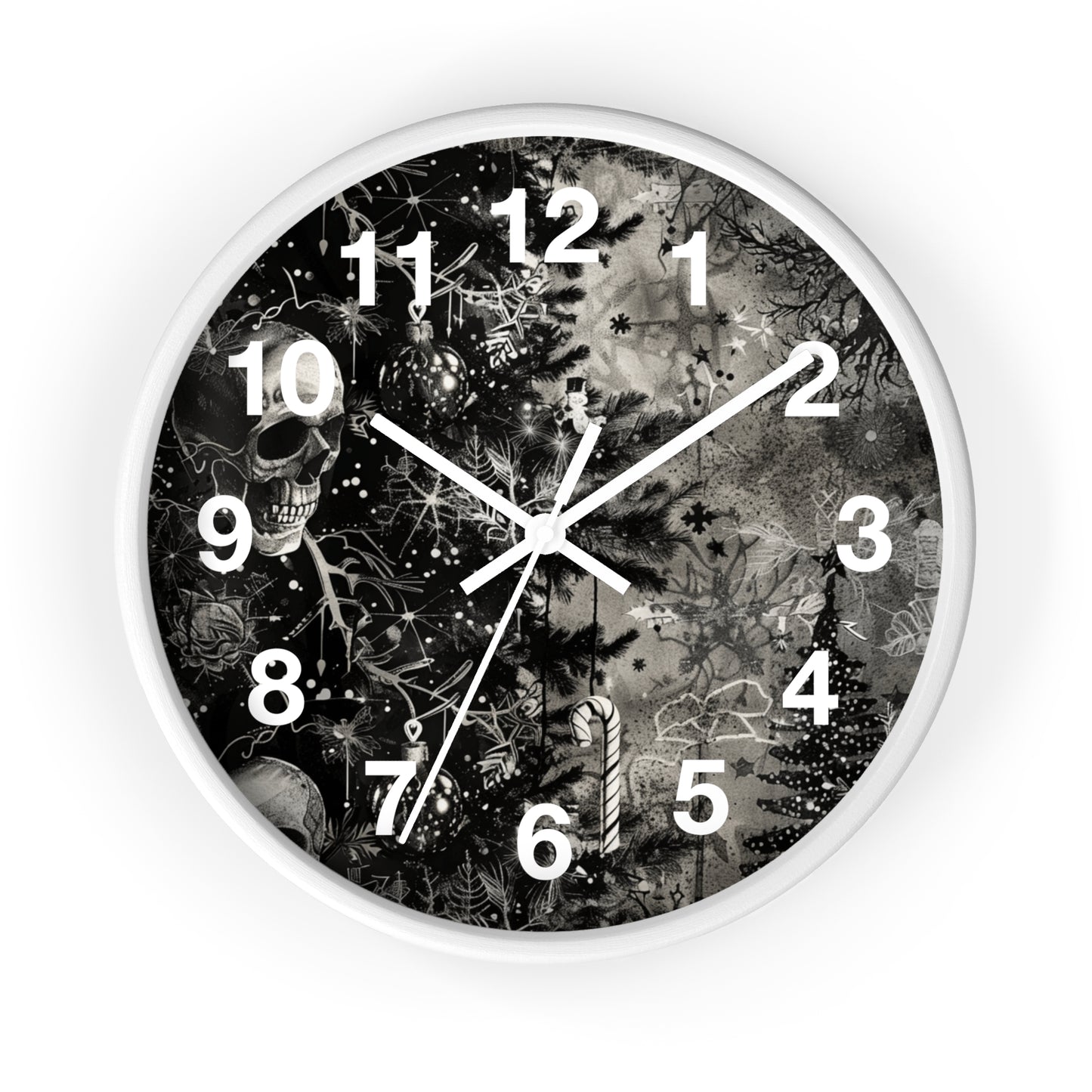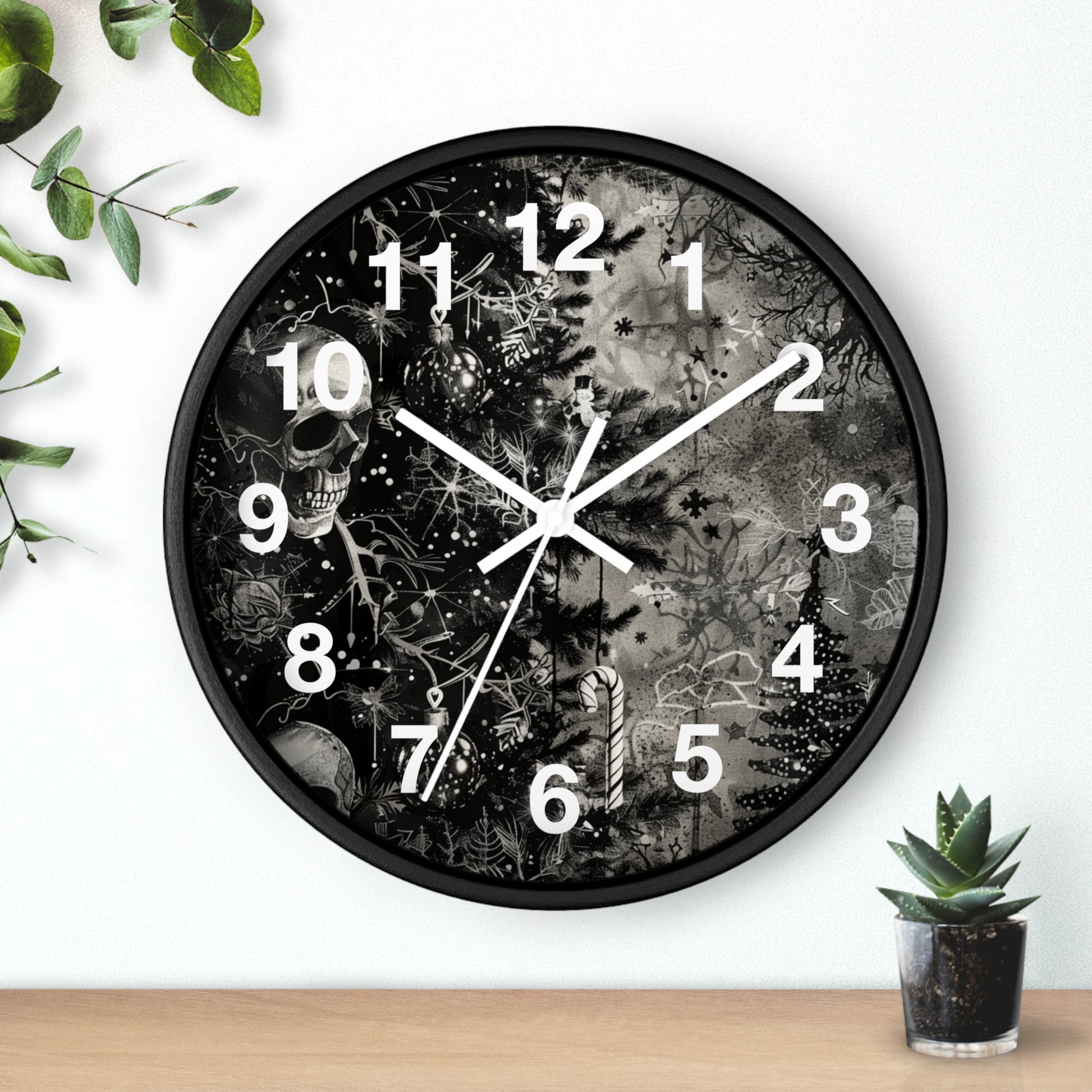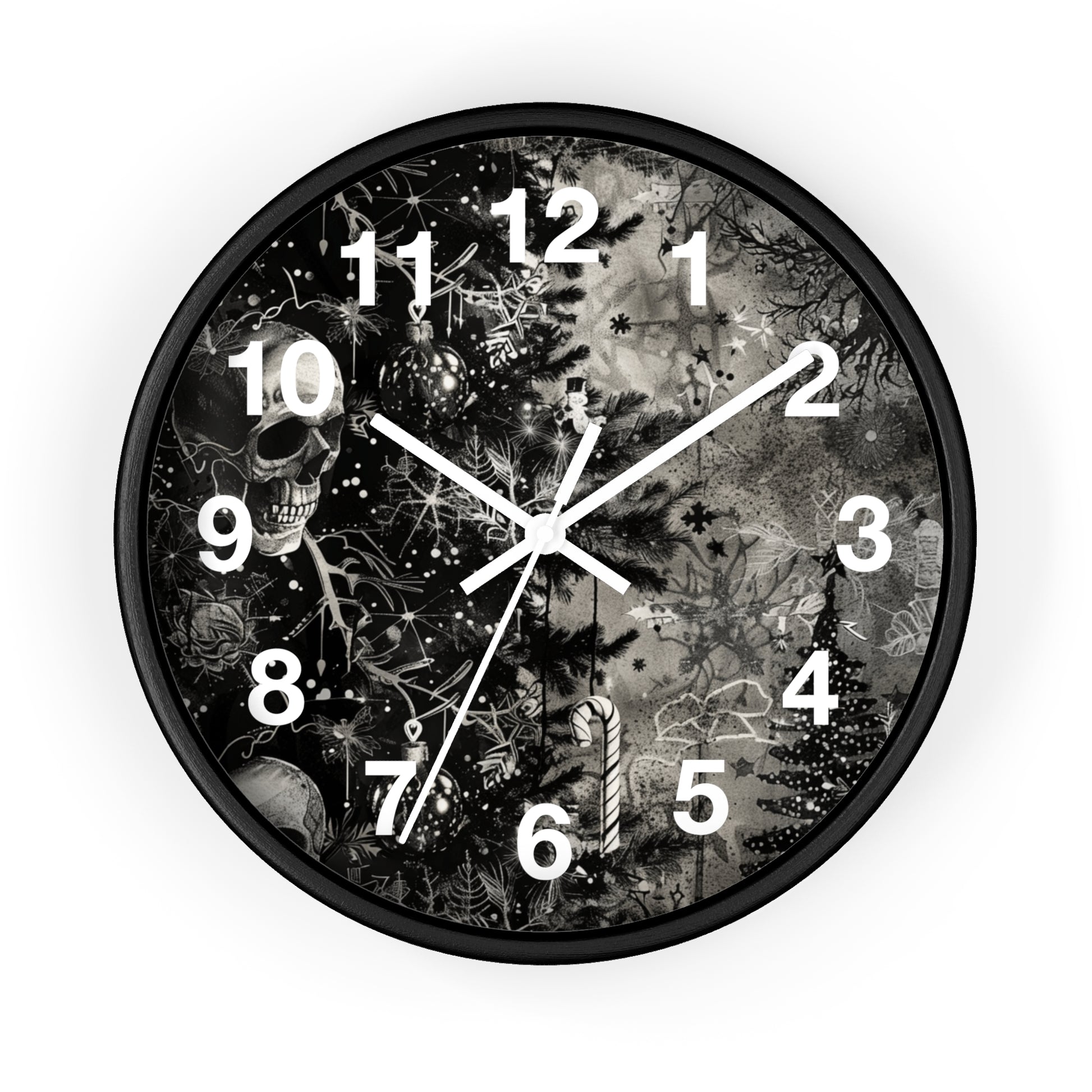 Black & White Christmas Gothic Wall Clock | Unique Holiday Decor | Battery Operated | Dark Spooky Aesthetic | Perfect Gift for Gothic Lovers
