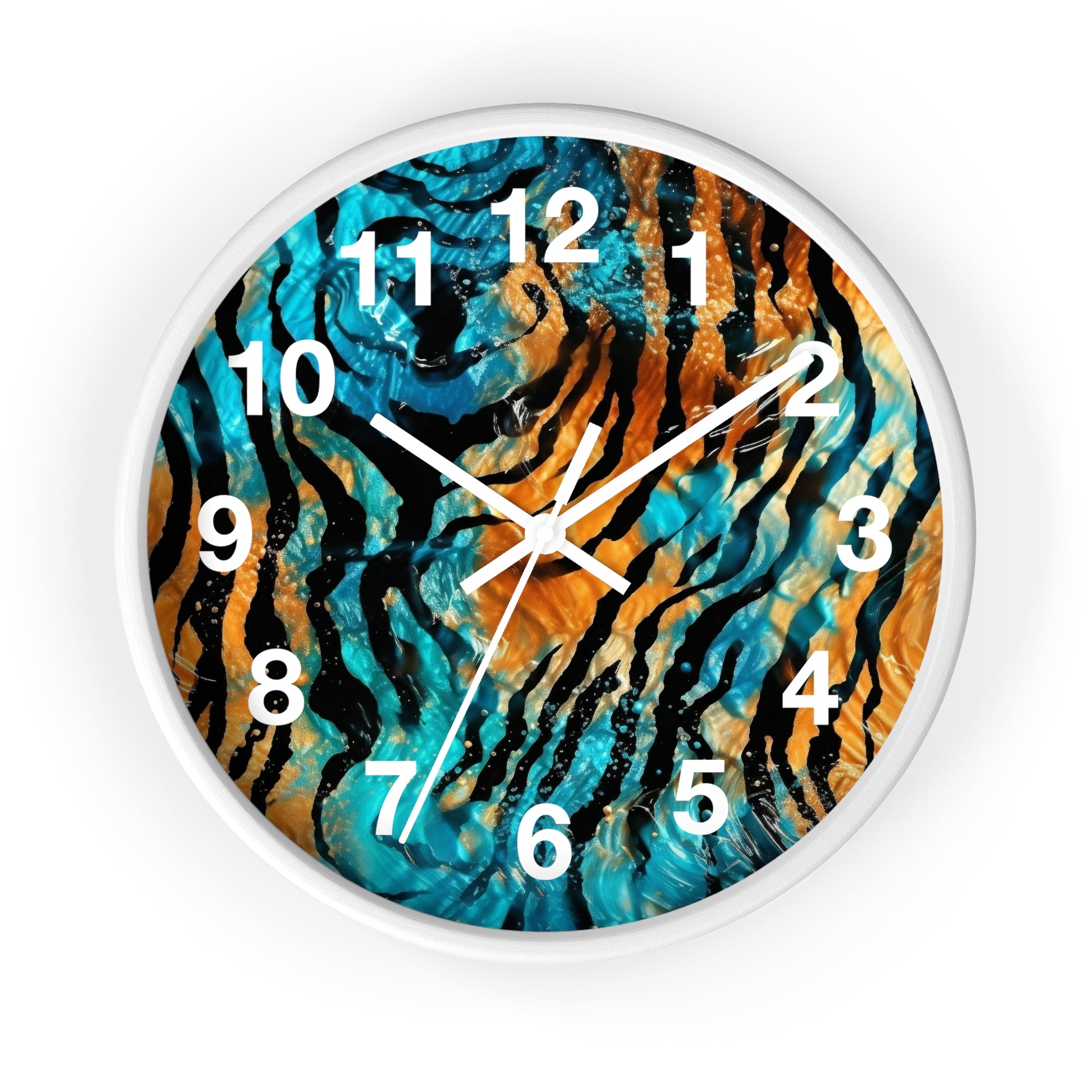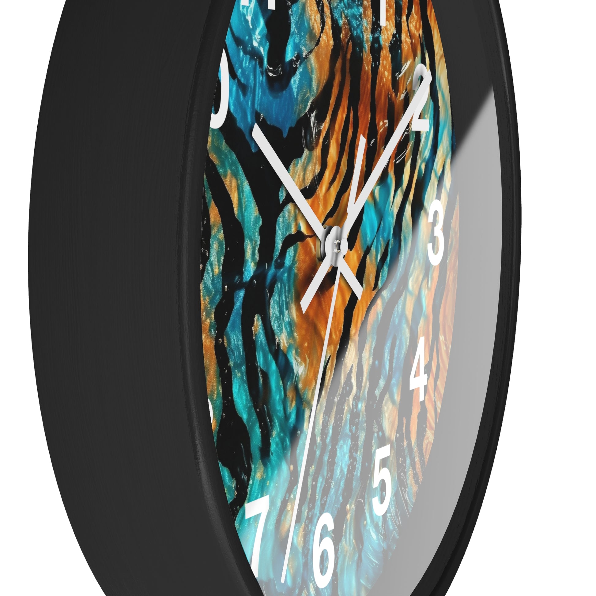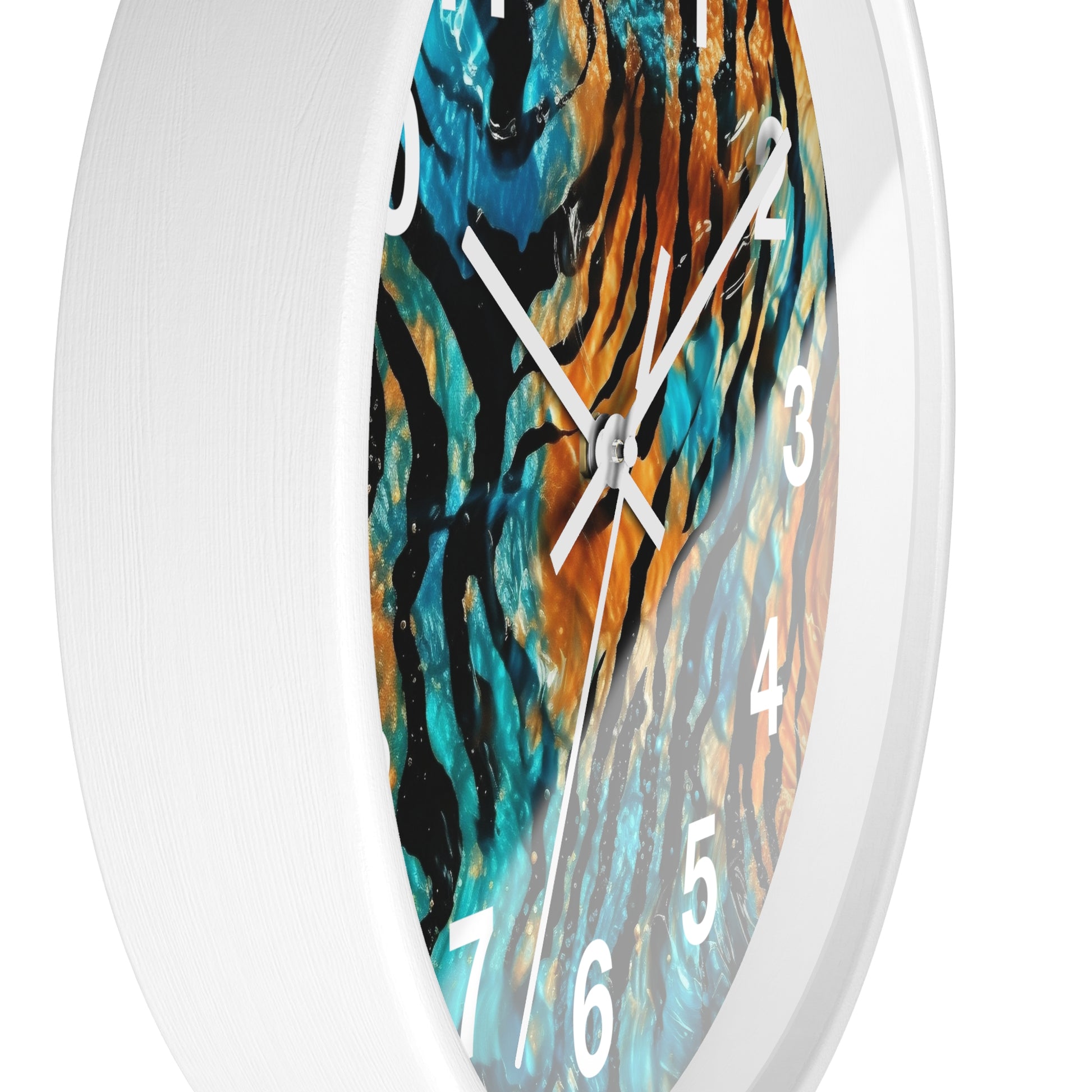 Blue and Orange Tiger Print Wall Clock | Trippy Animal Art | Battery Operated | Unique Teen Room Decor | Perfect Gift for Animal Lovers