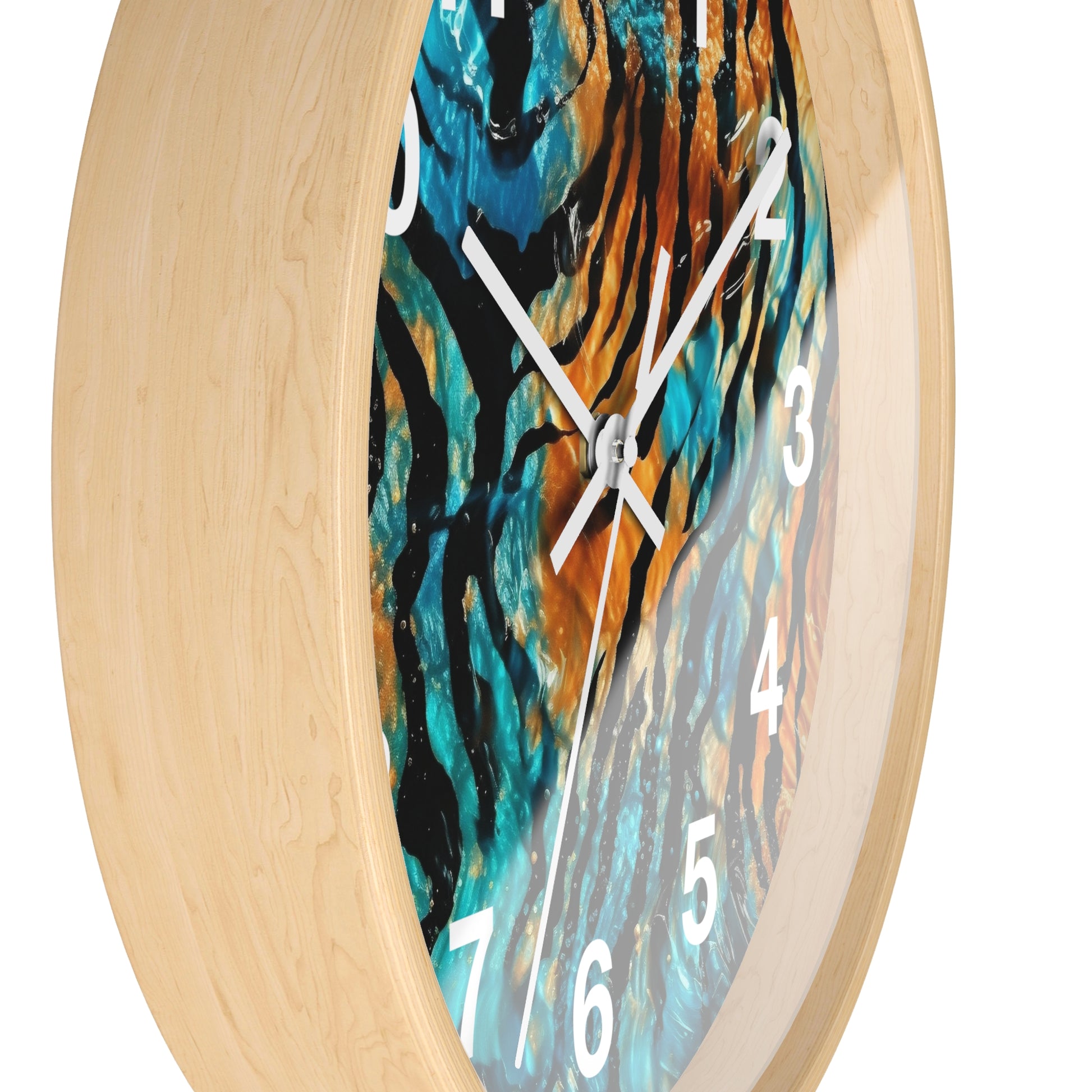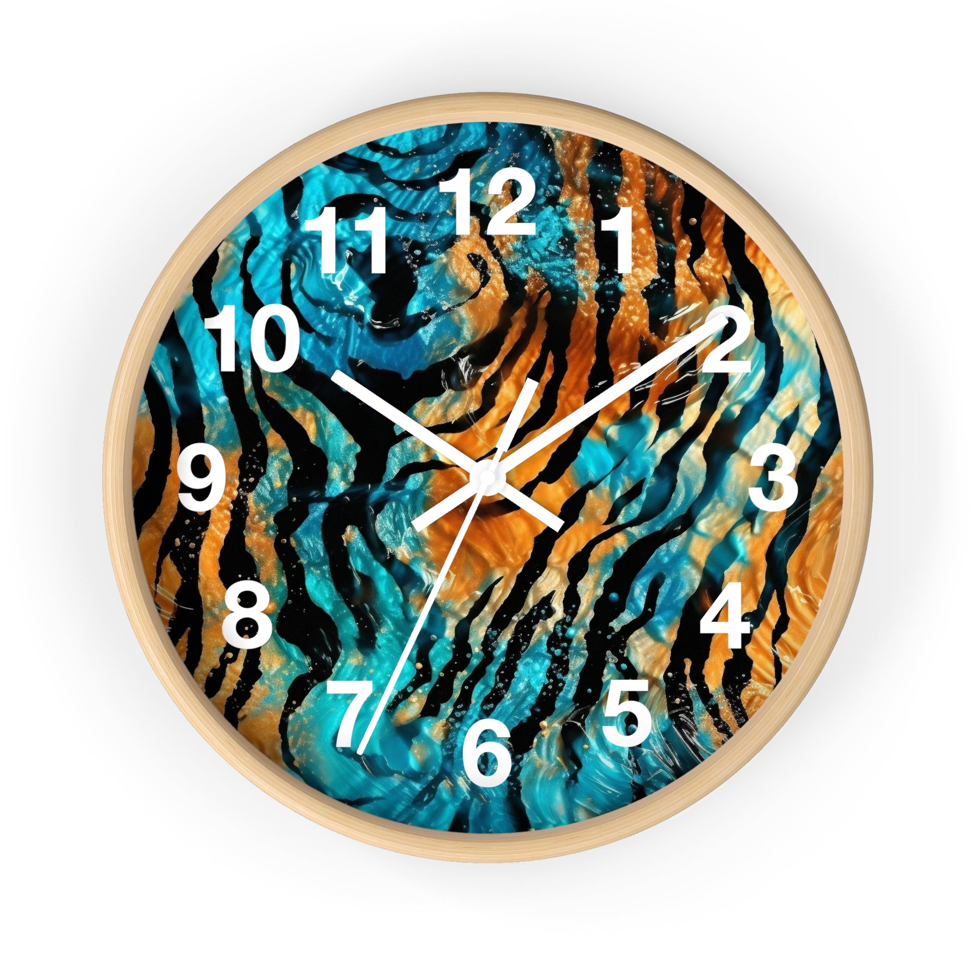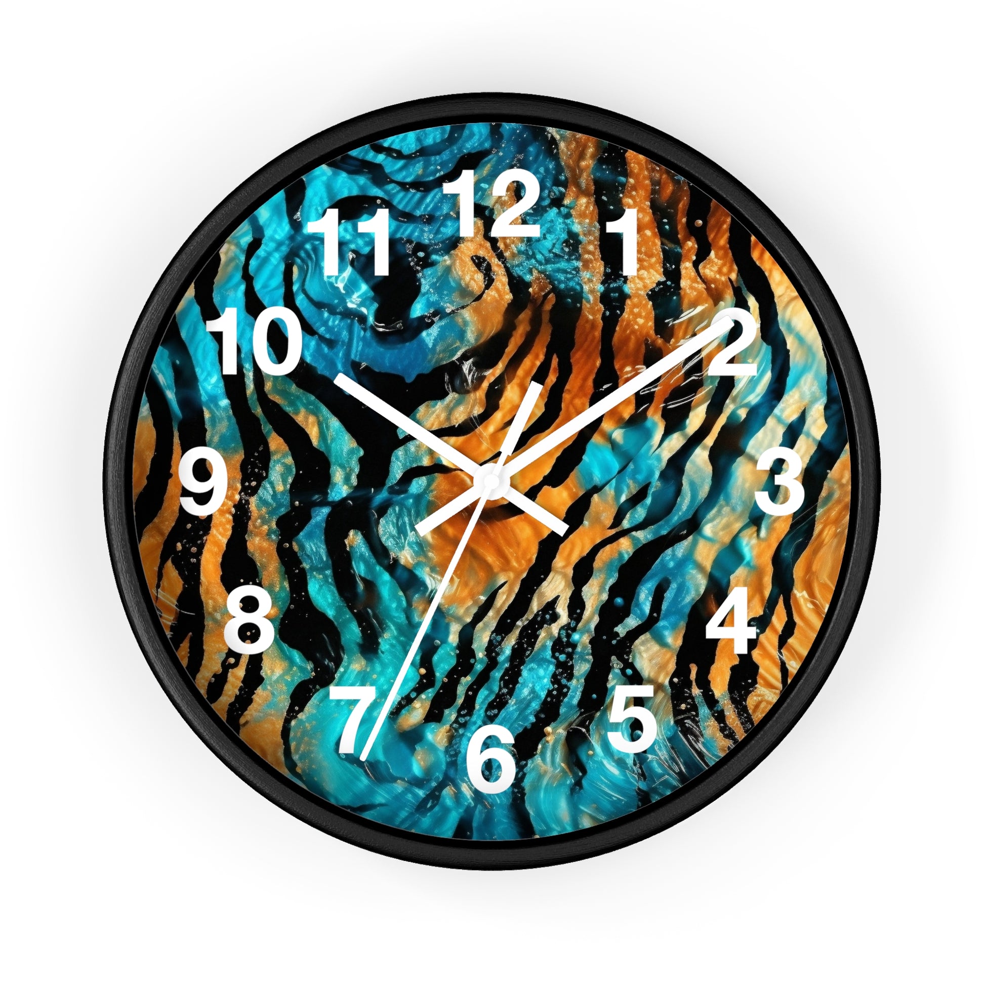 Blue and Orange Tiger Print Wall Clock | Trippy Animal Art | Battery Operated | Unique Teen Room Decor | Perfect Gift for Animal Lovers