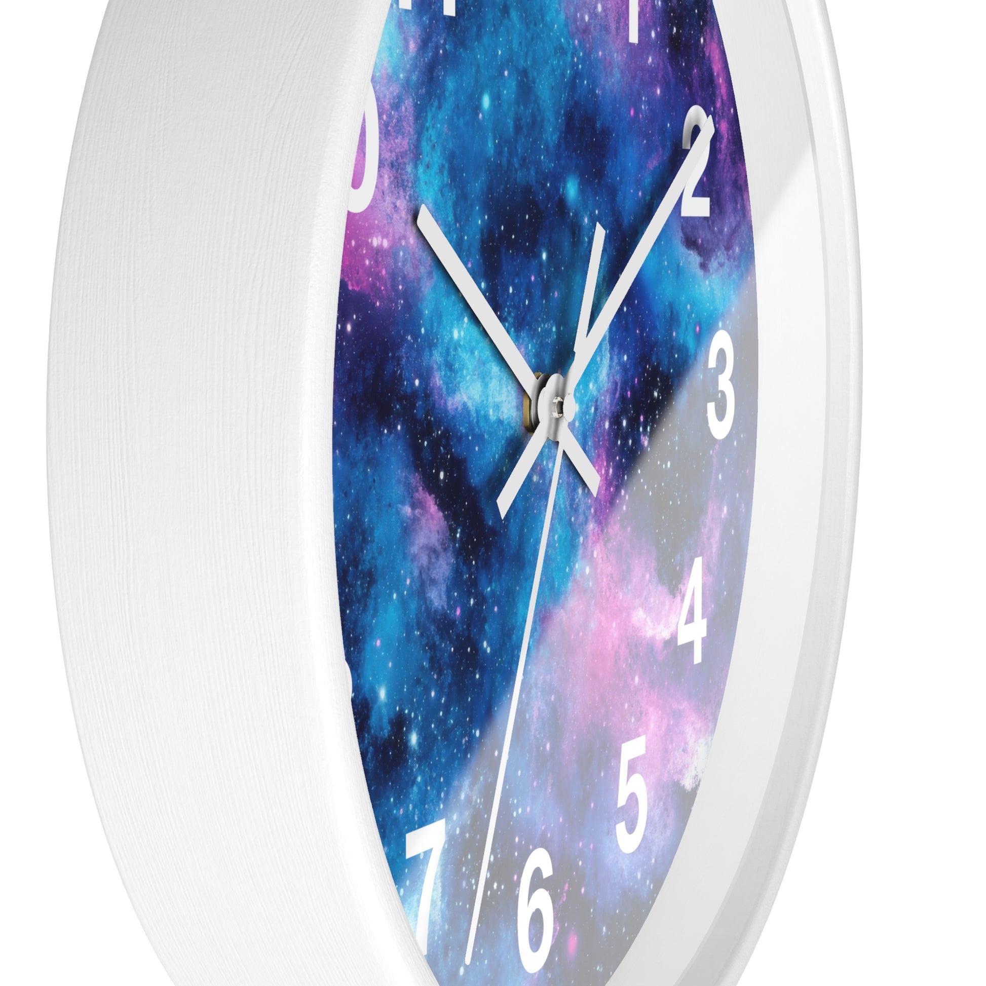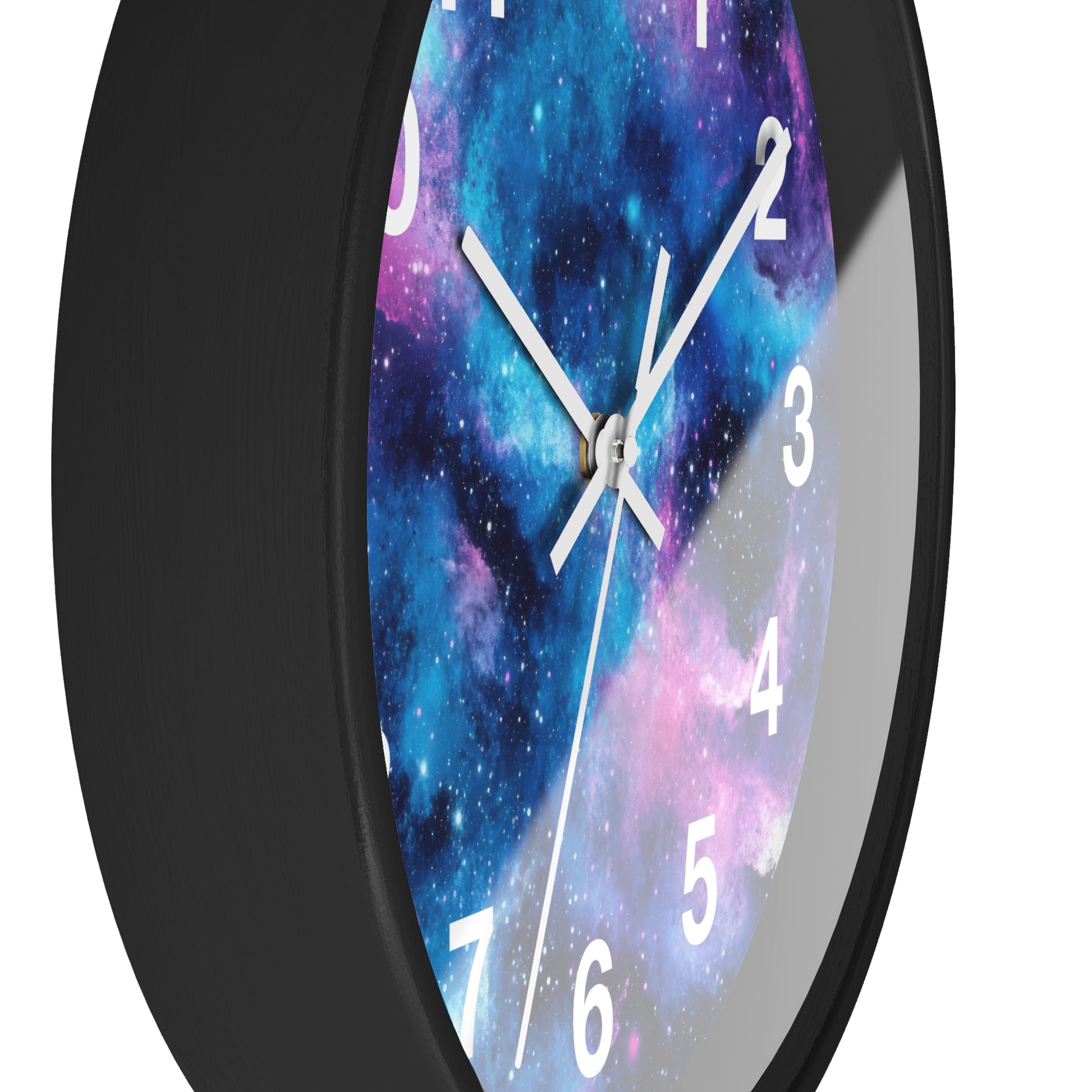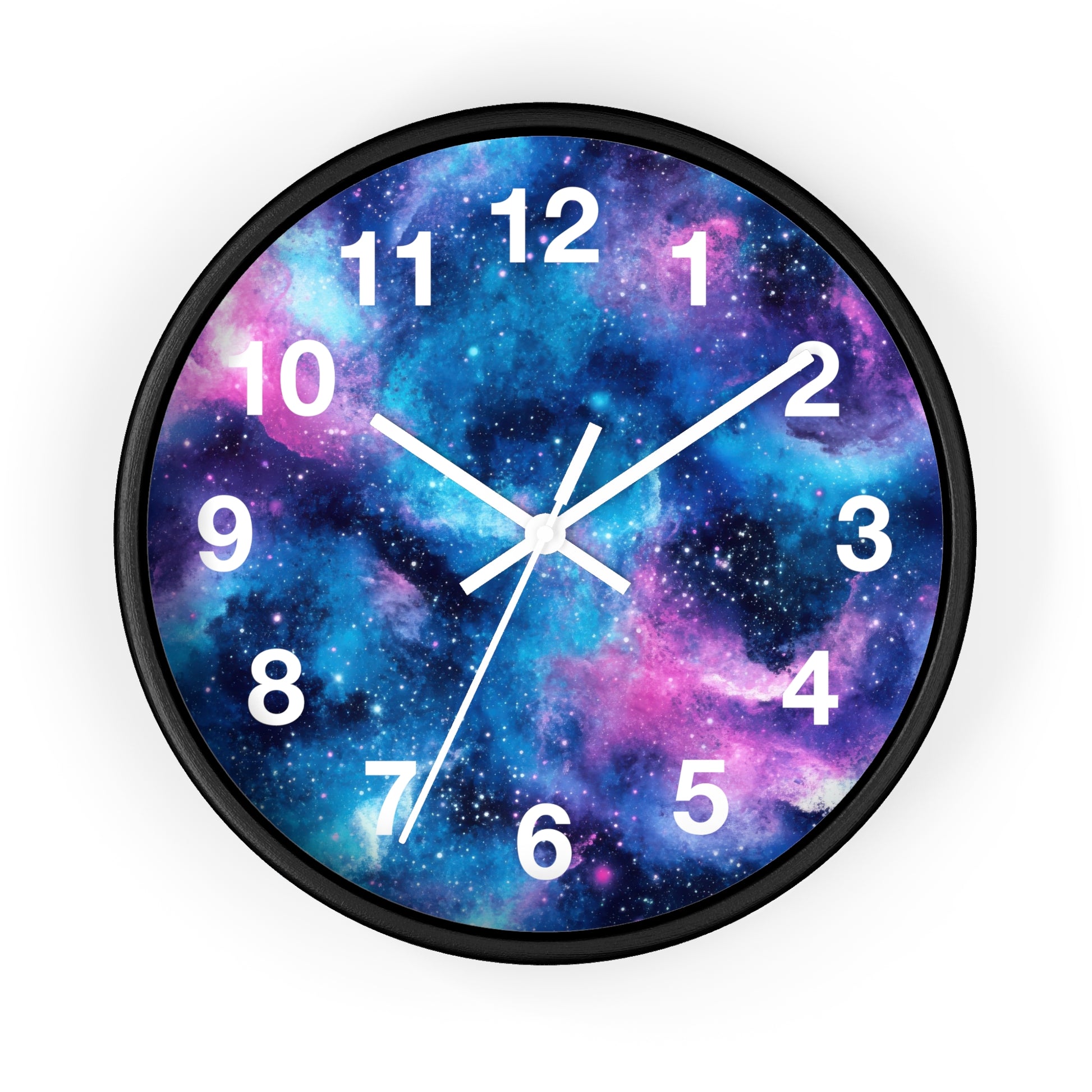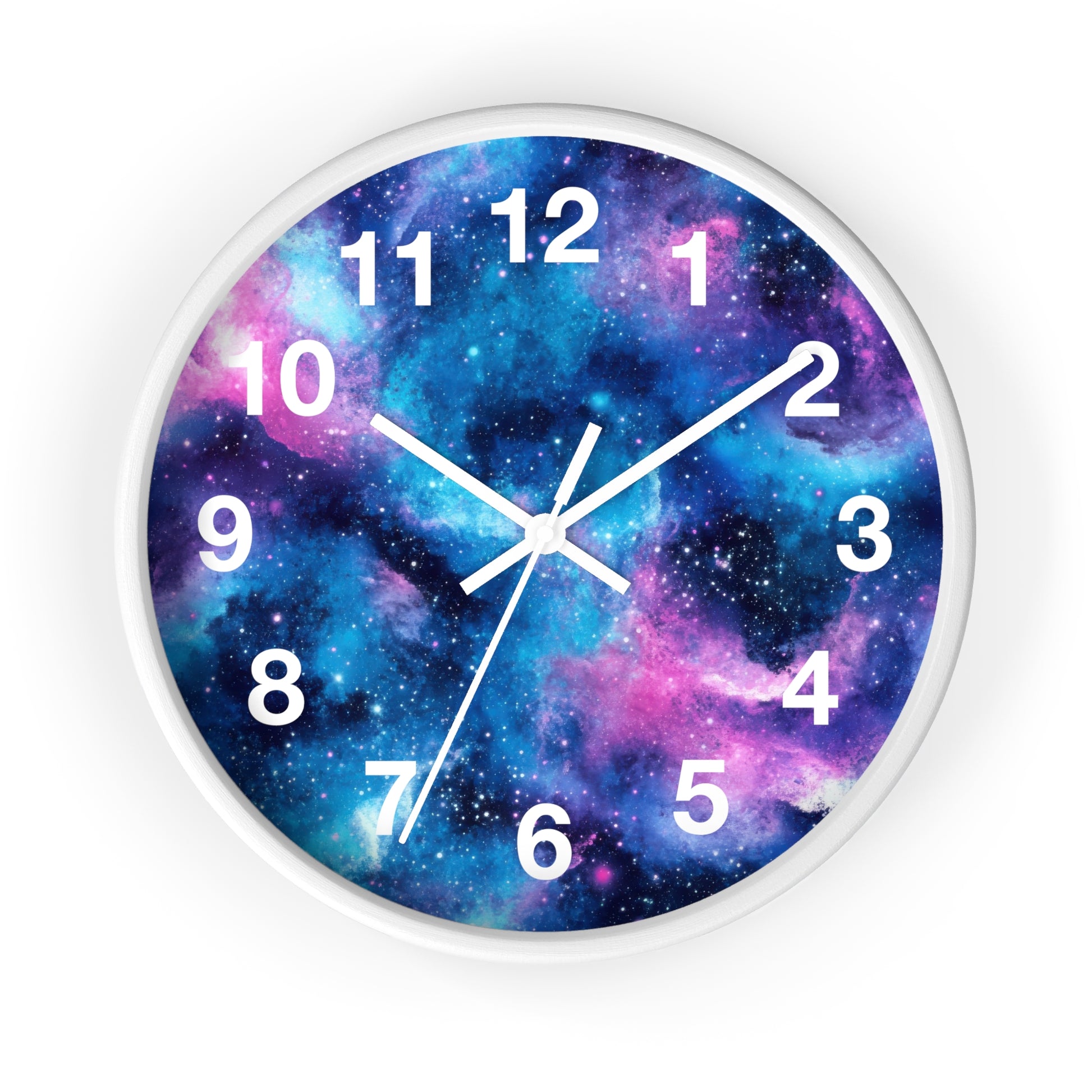 Blue Pink Trippy Space Wall Clock | Galaxy Rave Decor | Battery Operated | Unique Teen Girl Room Decoration | Perfect Rave Cosmic Enthusiast