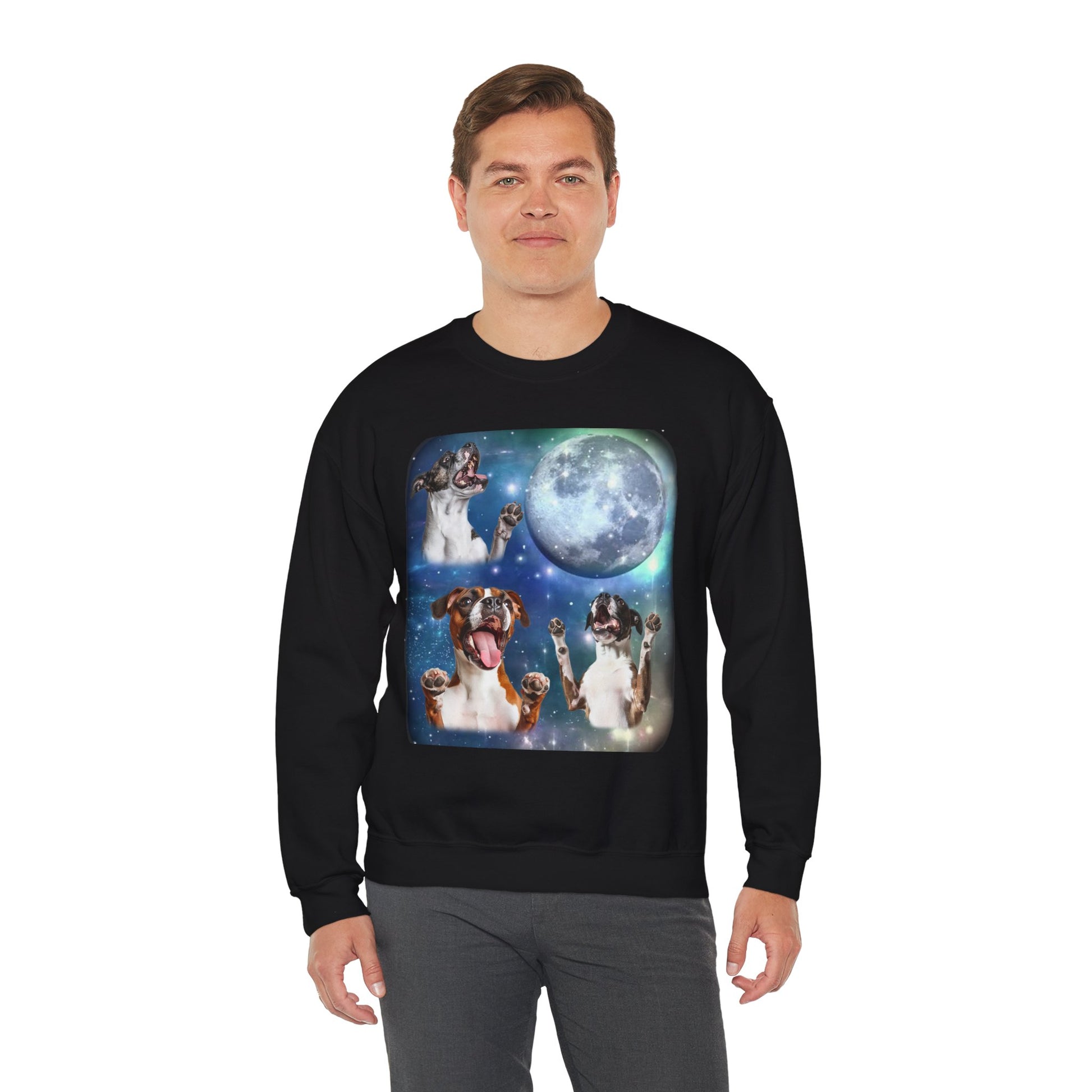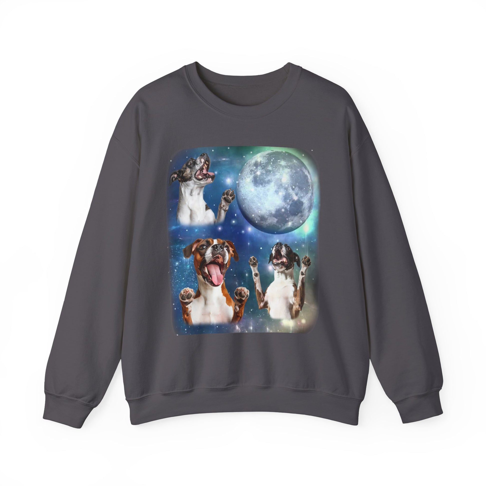 Boxer Howling at Moon Sweatshirt | Vintage Dog Lover Pullover Sweater | Funny Boxer Apparel Gift for Dog Lovers and Pet Enthusiasts