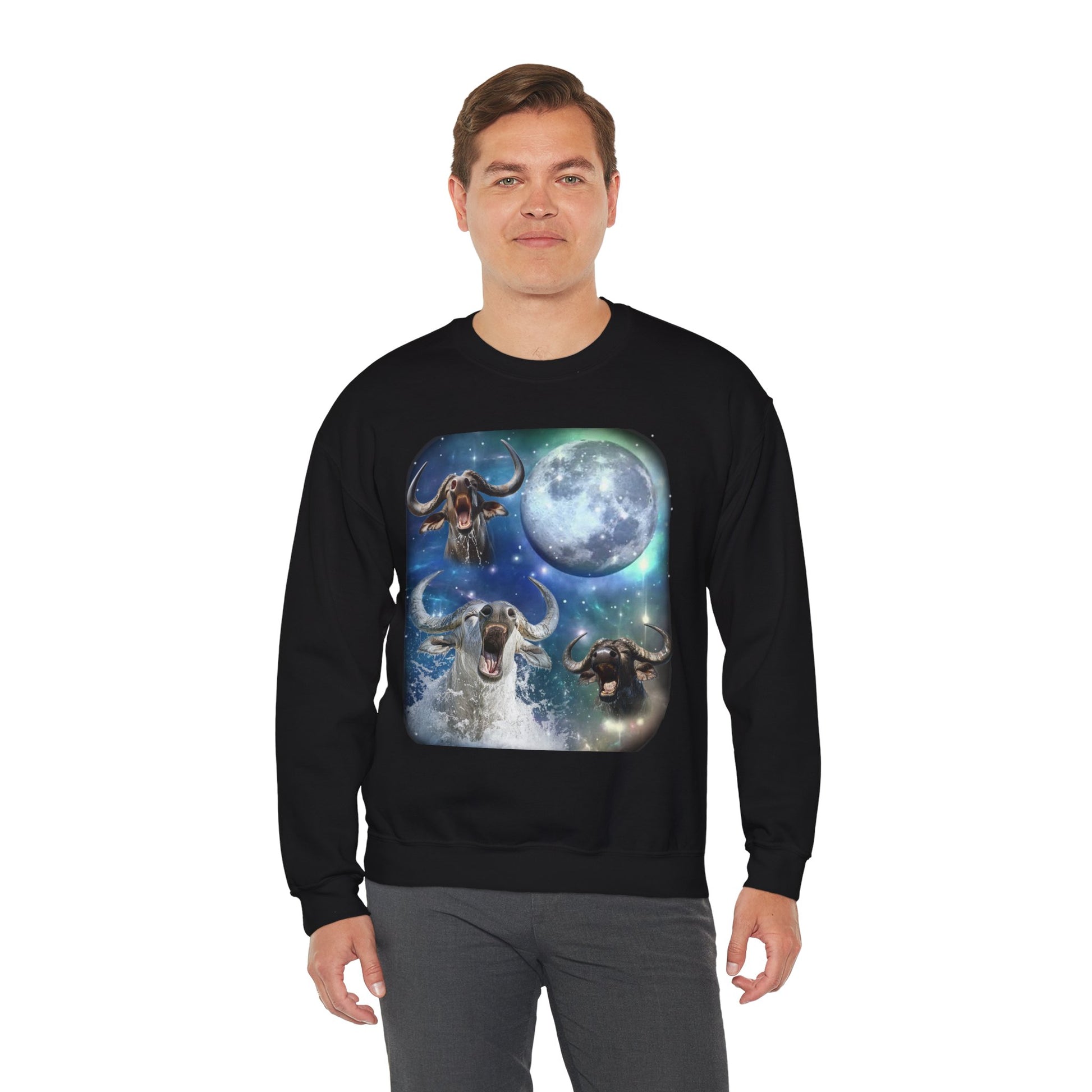 Buffalo Howling at Moon Sweatshirt | Vintage Bison Lover Pullover Sweater | Funny Buffalo Apparel Gift for Wildlife and Nature Lovers