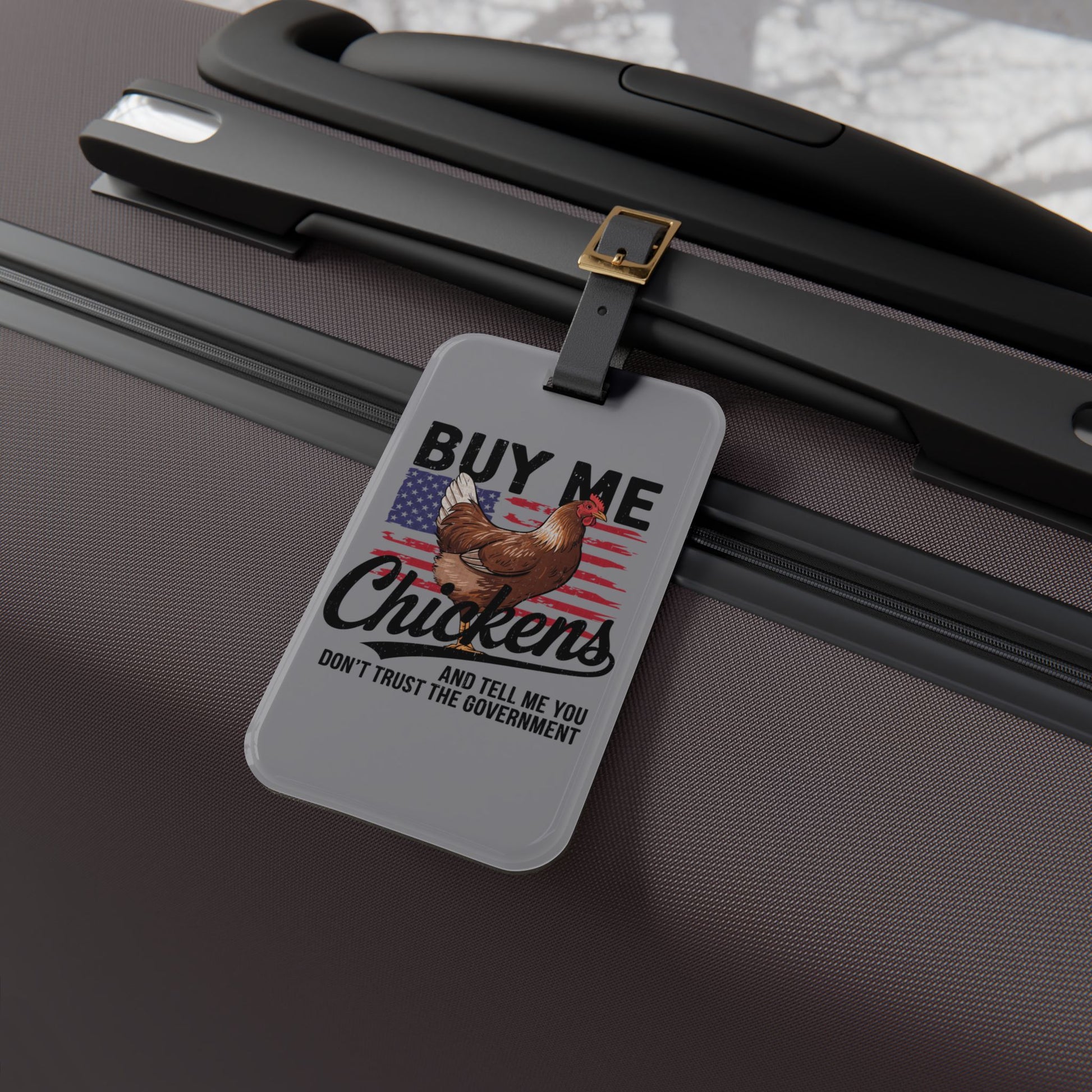 Buy Me Chickens Luggage Tag | Funny Chicken Conspiracy Baggage ID | Homesteader Jokes Travel Accessory | Perfect Gift for Chicken Lovers
